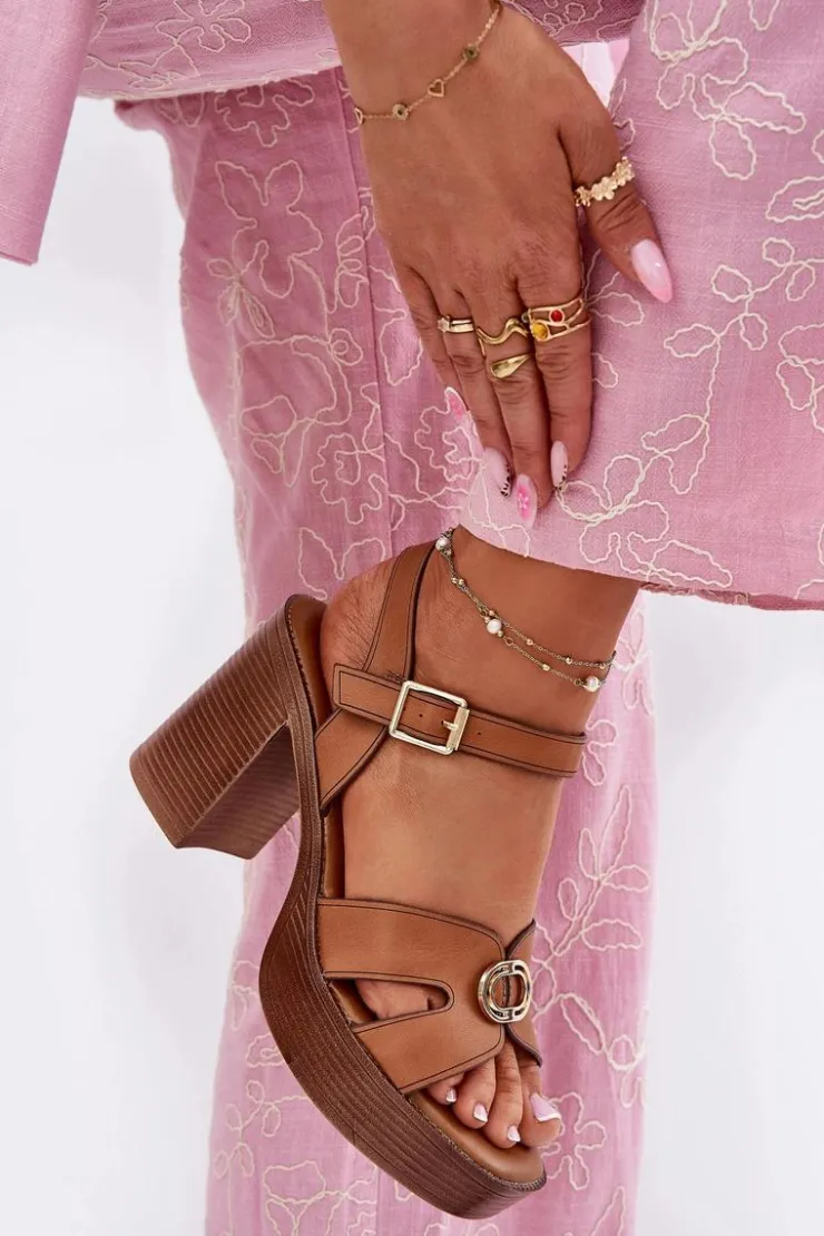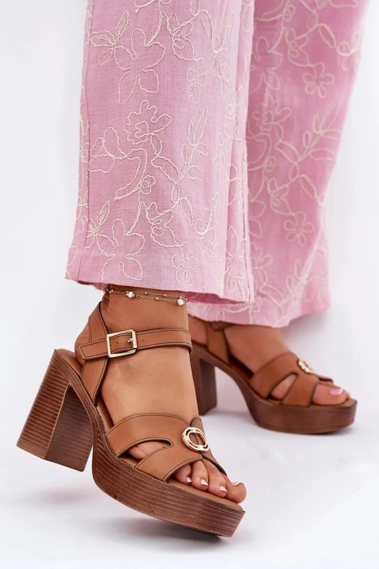 Damskie Evento Sandały Damskie Na Słupku Ze Złotą Ozdobą Camel Nusorilis
