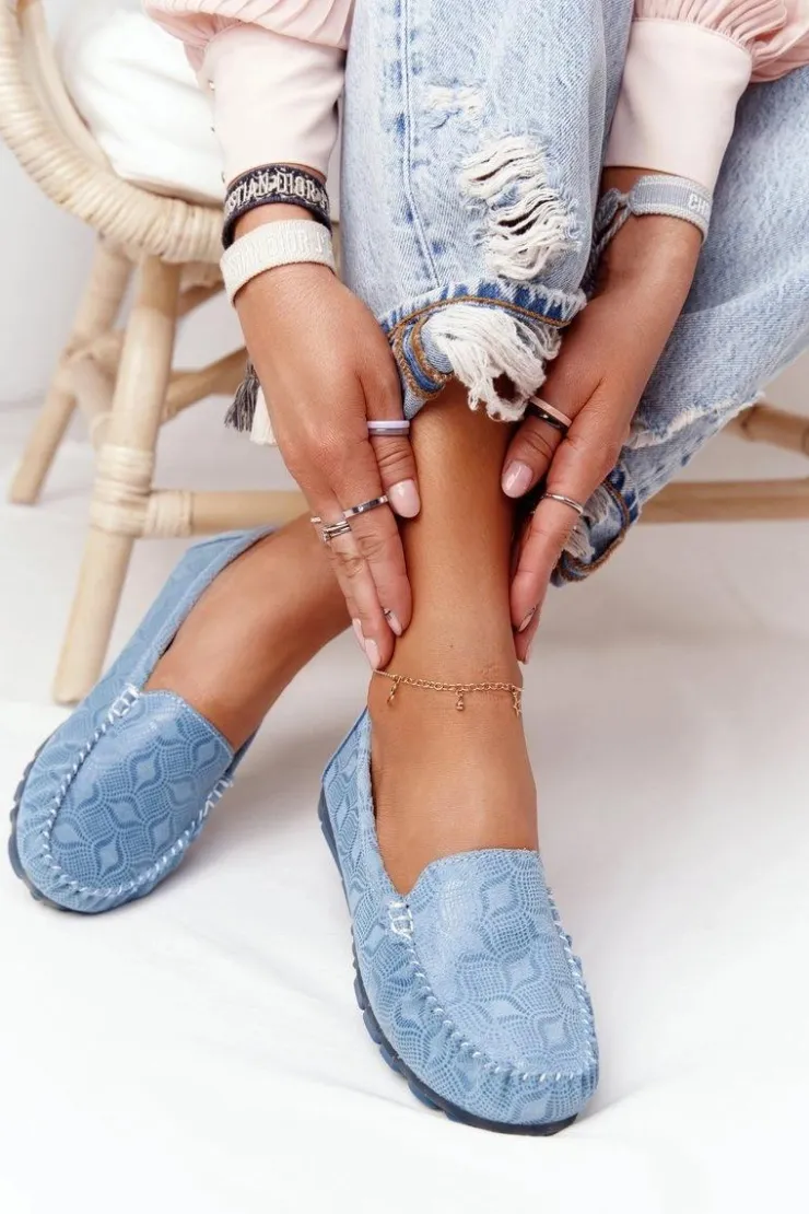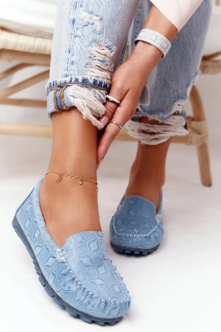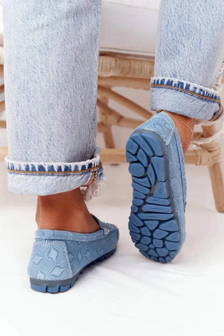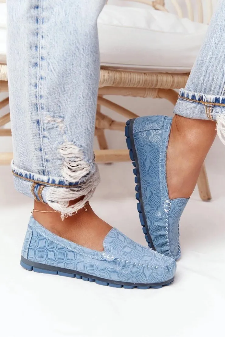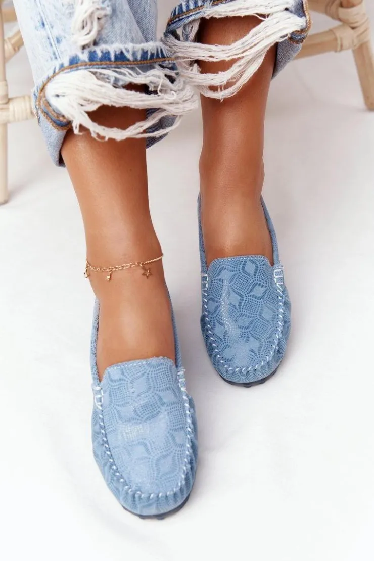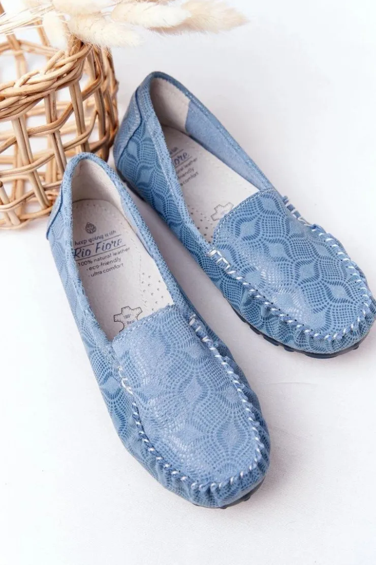 Damskie Evento Skórzane Mokasyny RIO FLORE Eco-Friendly Niebieskie