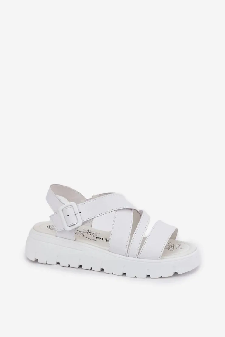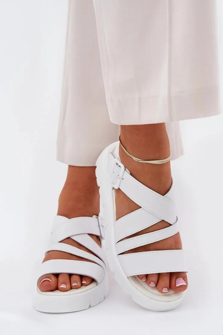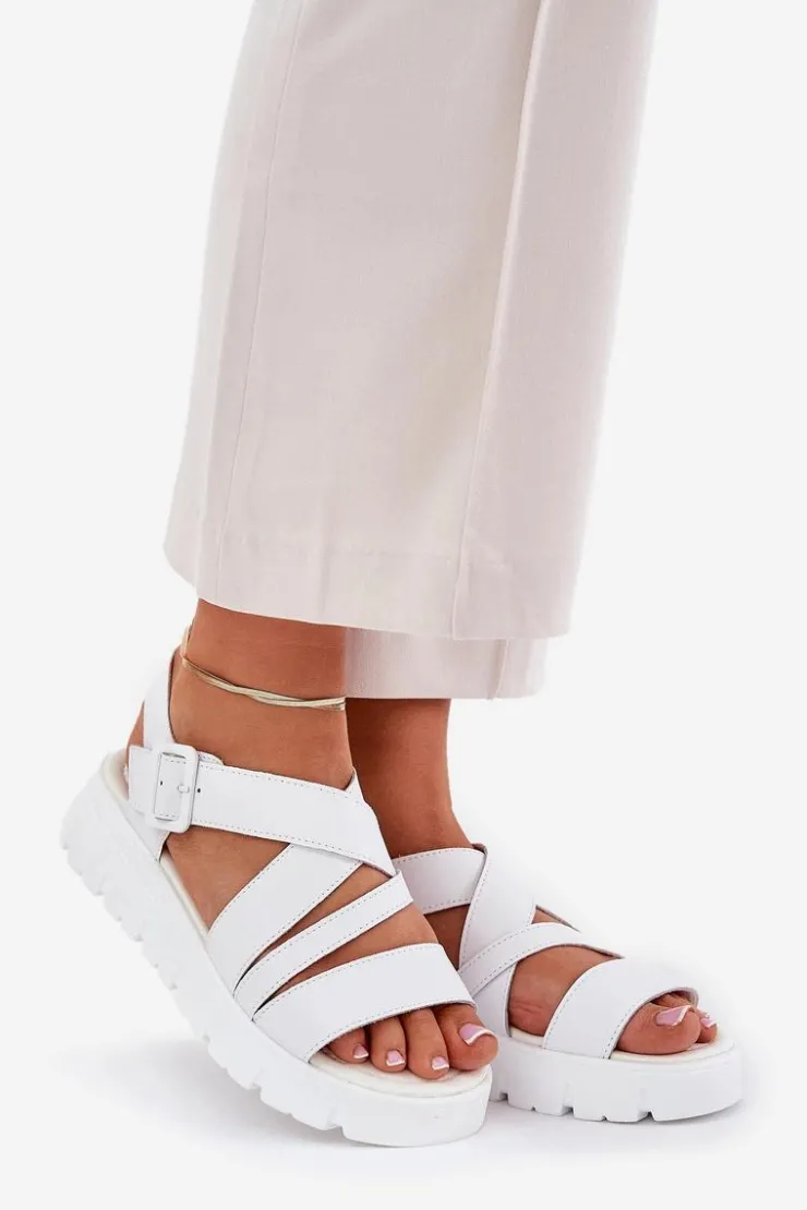 Damskie Evento Skórzane Sandały Damskie Na Platformie Z Klamrą Białe Selianae