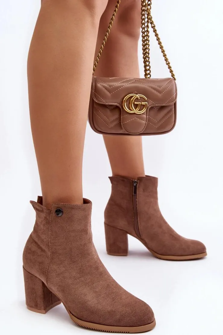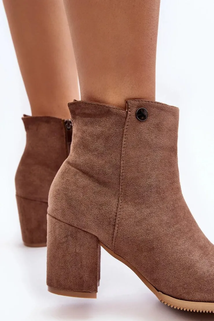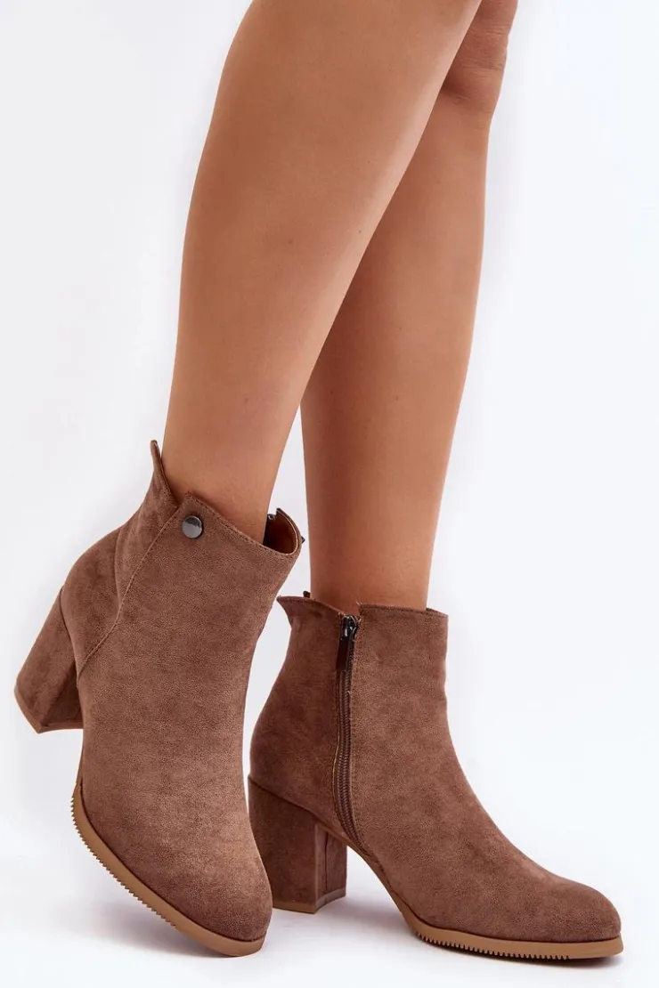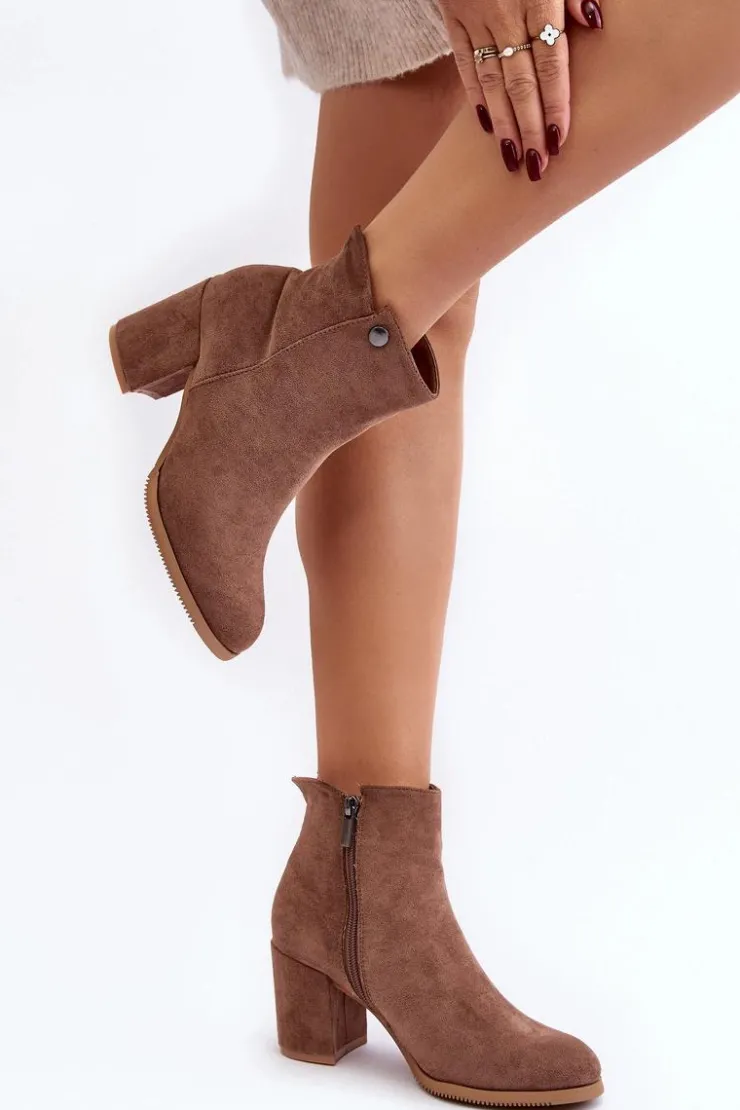 Klasyczne botki damskie na obcasie słupku. Wykonane z eko zamszu. Cholewka za kostkę. Środek ocieplony miłym w dotyku kocem obuwniczym. Noski zaokrąglone. Zapinane na zamek. Dodatkowo model ten posiada usztywniony zapiętek. Będą pasować do spodni, spódnic czy sukienek. Koniecznie powinnaś je mieć! Przy wyborze rozmiaru prosimy sugerować się tabelą rozmiarów.