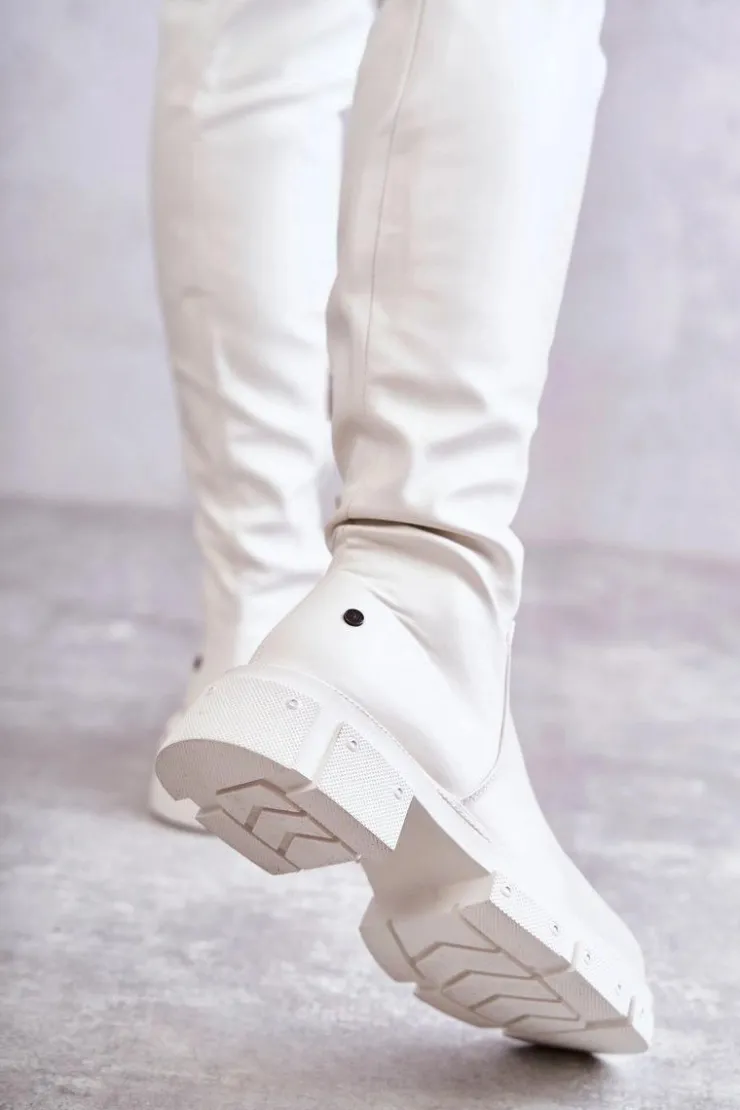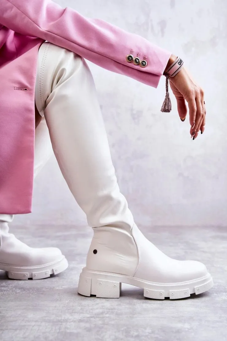 Niezwykłe kozaki damskie od marki GOE zostały wykonane z połączenia skóry ekologicznej i naturalnej. Model wsuwany, z dodatkowym zamkiem na cholewce. Osadzone na platformie i płaskim obcasie ze żłobieniami. Kozaki zostały ocieplone miłym w dotyku kocem obuwniczym. Zapiętek jest usztywniany. Ten model to HIT tego sezonu! Przy wyborze rozmiaru prosimy sugerować się tabelą rozmiarów.