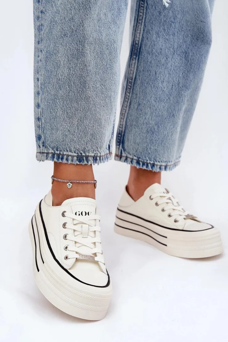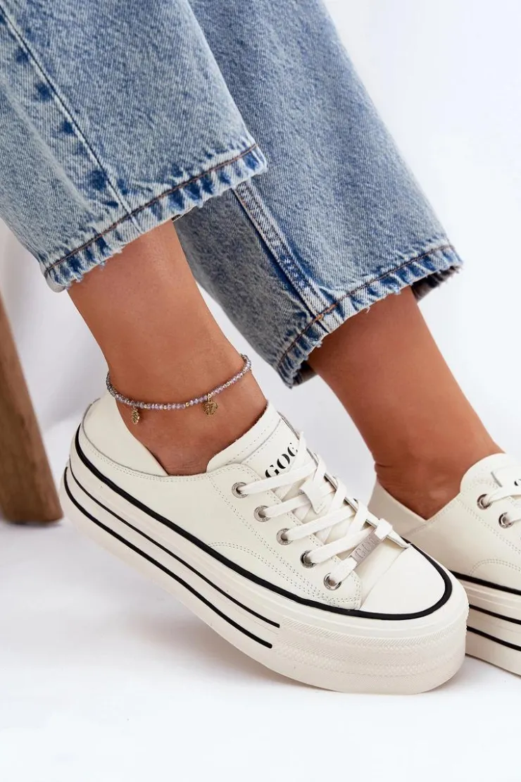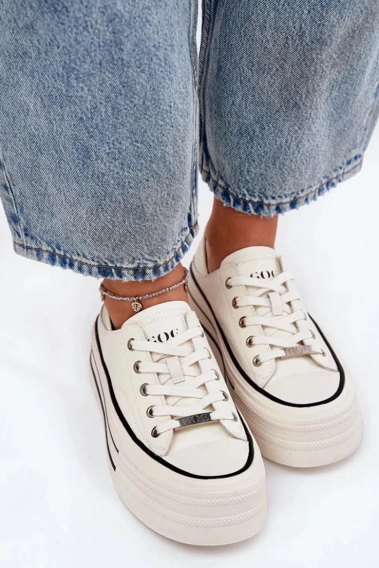 Trampki damskie od marki GOE. Wykonane z wysokiej jakości skóry naturalnej. Osadzone na masywnej platformie, zapewniają komfort i stabilność, jednocześnie dodając lekkości sylwetce. Miękka wkładka dba o komfort przez cały dzień. Te trampki to doskonały wybór do codziennych stylizacji! Przy wyborze rozmiaru prosimy sugerować się tabelą rozmiarów.