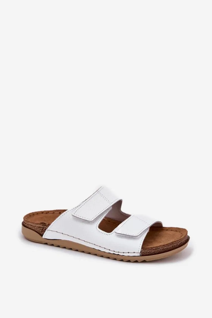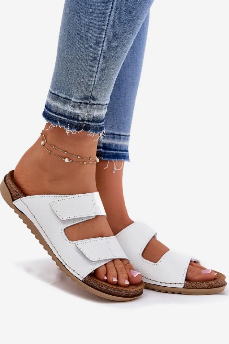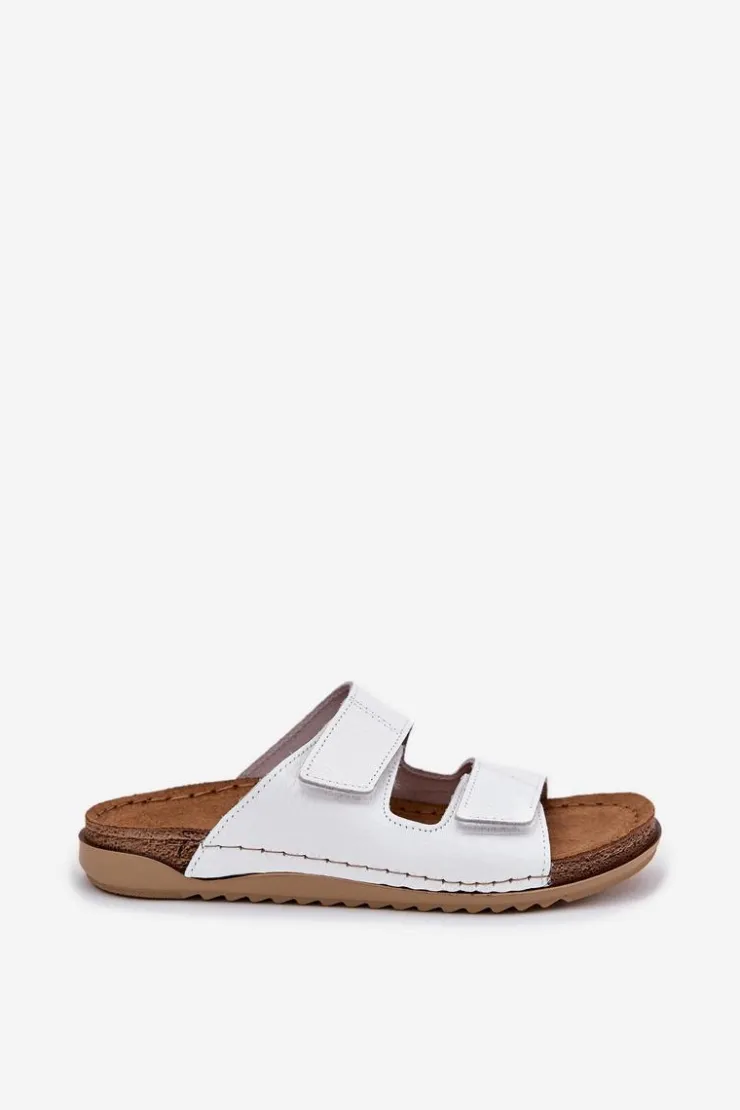 Klapki damskie od marki INBLU. Wykonane z naturalnej skóry. Model ten posiada paski z rzepami, co pozwala na doskonałe dopasowanie do tęgości stopy. Wnętrze wyłożone materiałem skóropodobnym dobrze przepuszczającym powietrze. Wkładka wewnętrzna „COMFORT ANATOMICO” profilowana, dostosowana do kształtu anatomicznego stopy, wykonana z miękkiej, naturalnej skóry. Spód wykonany z lekkiego i elastycznego tworzywa – poliuretanu – zapewnia sprężystość i bardzo dobre przenoszenie obciążeń na podłoże. Użyte materiały i zastosowana technologia zapewnia wysoki komfort użytkowania i wygodę. Przy wyborze rozmiaru prosimy sugerować się tabelą rozmiarów.