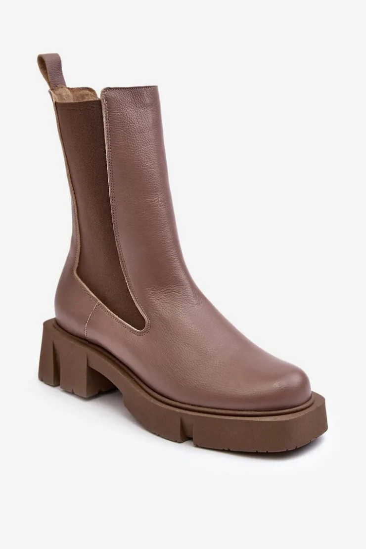 Świetne workery w stylu sztybletów zostały wykonane z naturalnej skóry. Masywna podeszwa z szerokim, płaskim obcasem zapewnia stabilność na każdym kroku. Została wykonana z gumowego tworzywa i jest antypoślizgowa. Wnętrze jest ocieplane kocem obuwniczym. Model ten jest klasycznie wsuwany. Przy wyborze rozmiaru prosimy sugerować się tabelą rozmiarów.