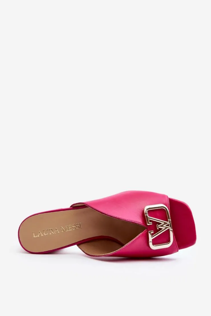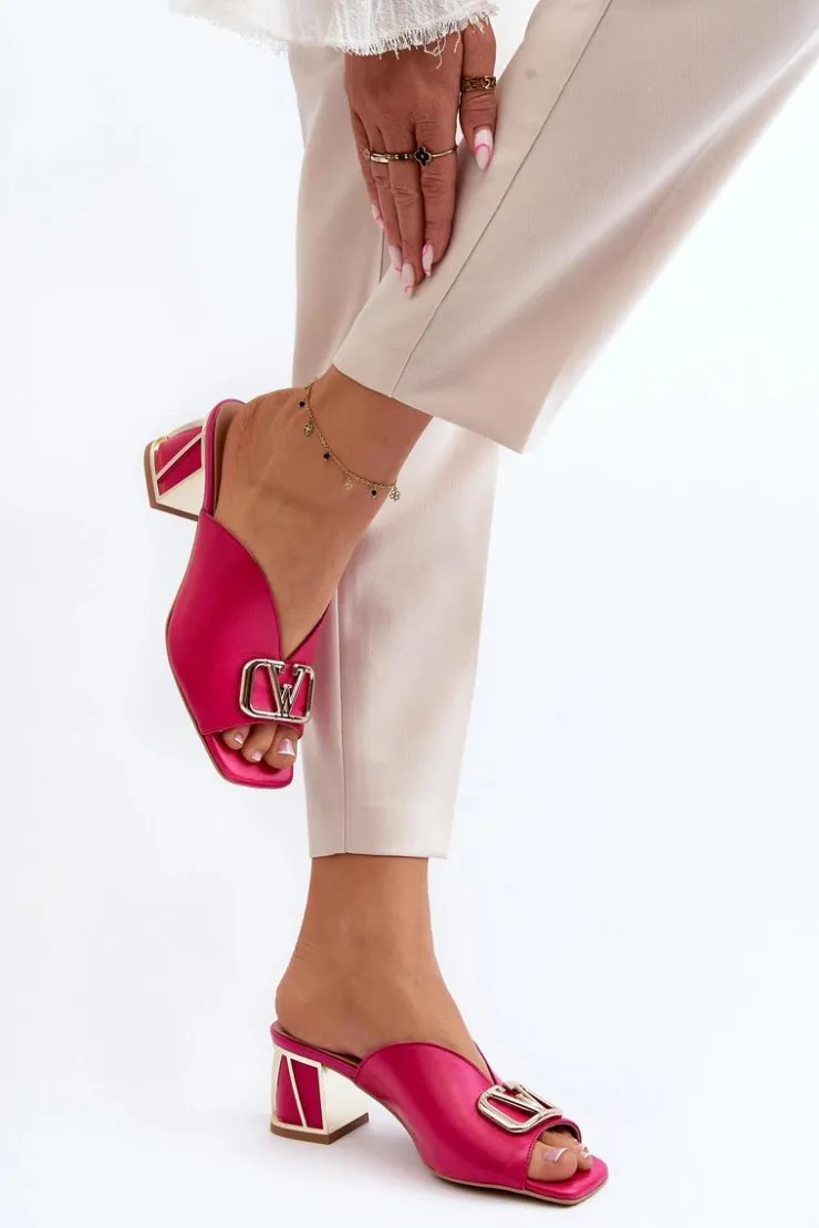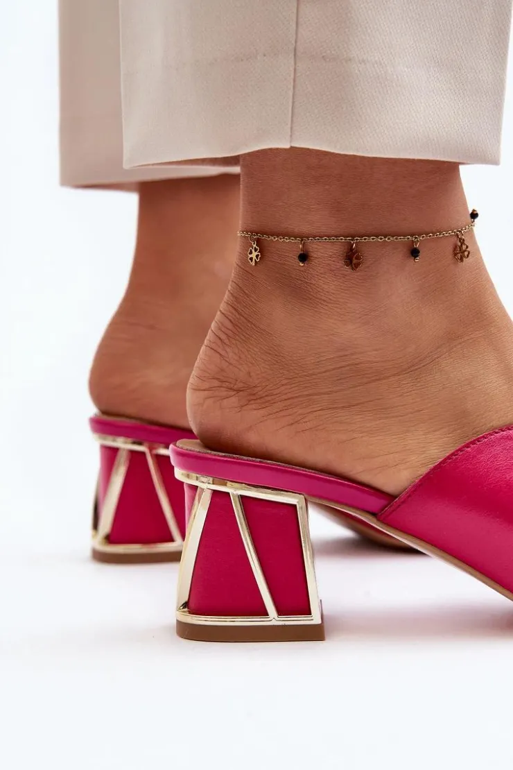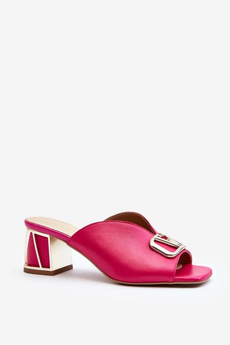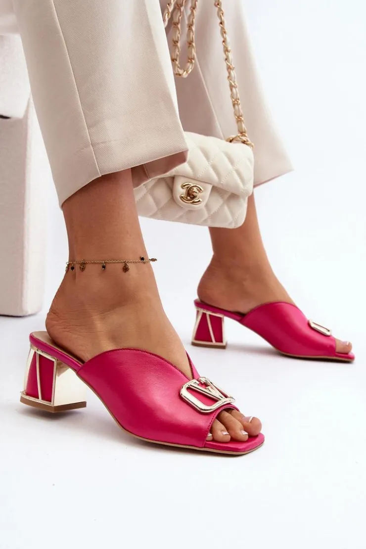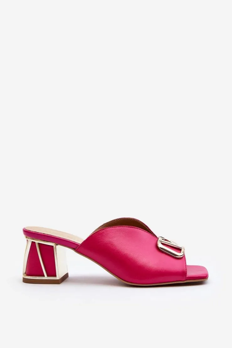 Eleganckie klapki damskie idealnie sprawdzą się w sezonie letnim. Wykonane z naturalnej skóry. Osadzone na obcasie w postaci klocka. Z przodu złota ozdoba. Fason ten dopasujesz do eleganckich spódnic, spodni i sukienek. Koniecznie powinnaś je mieć! Przy wyborze rozmiaru prosimy kierować się tabelą rozmiarów.