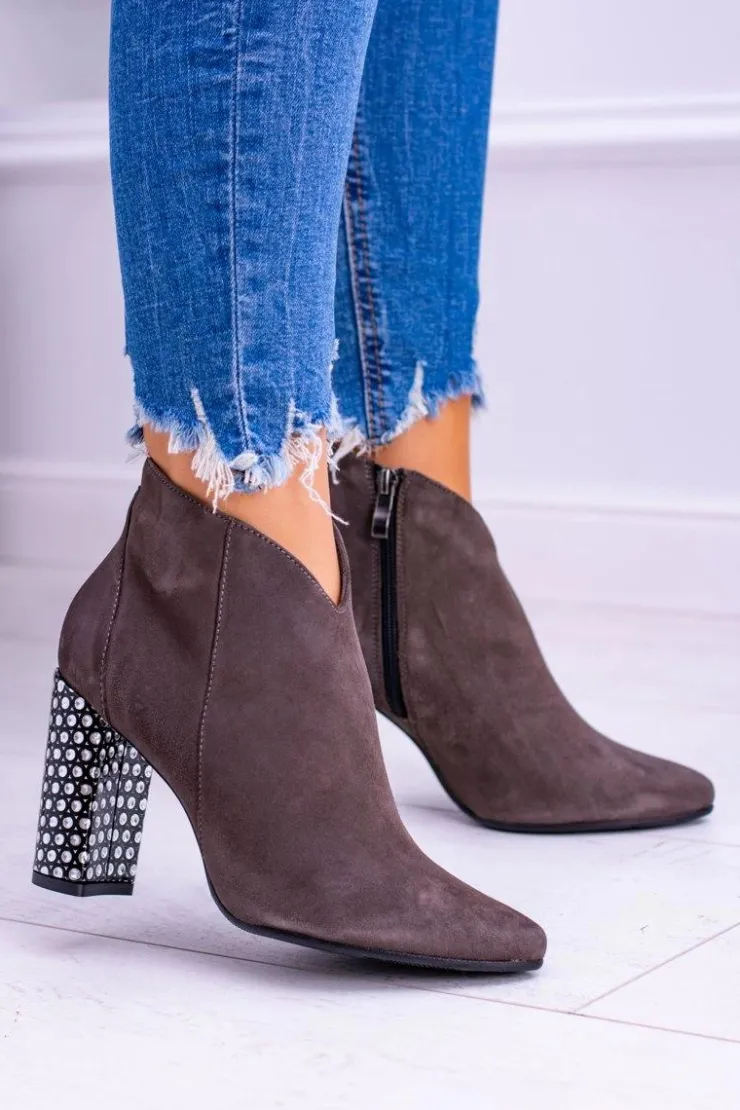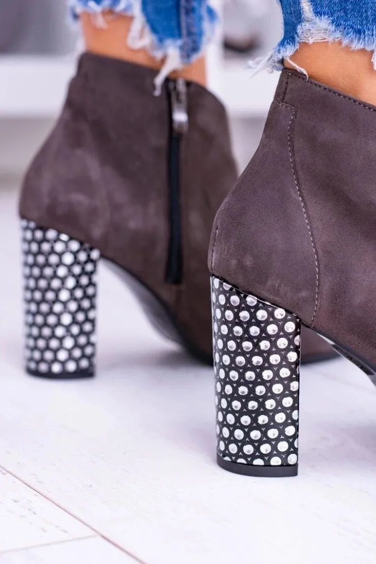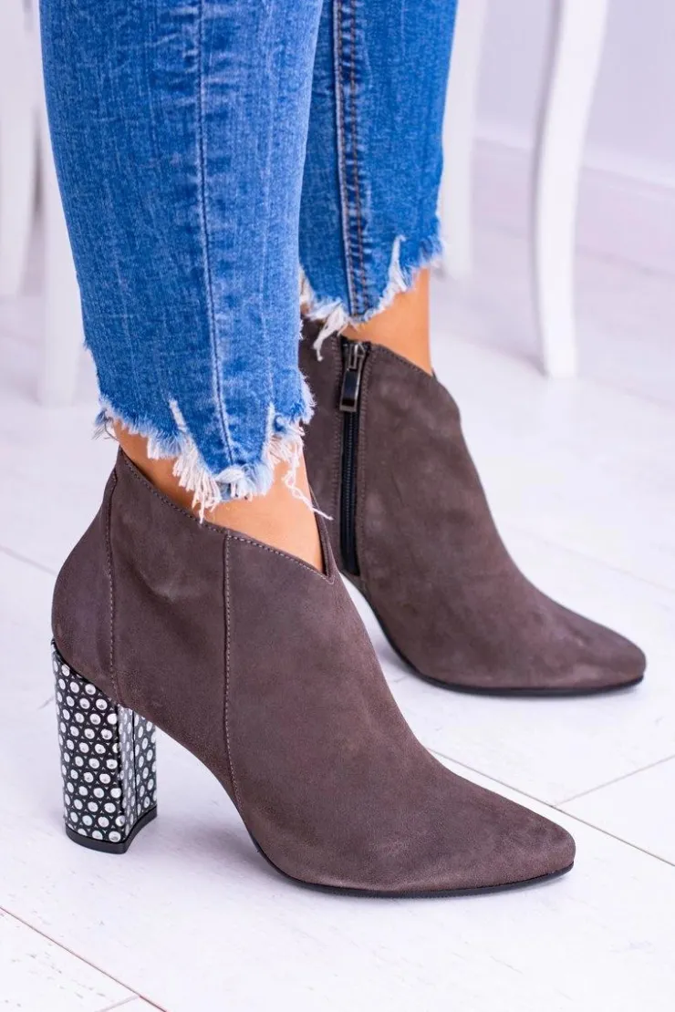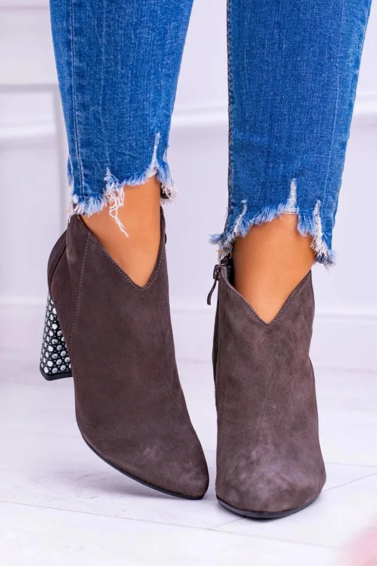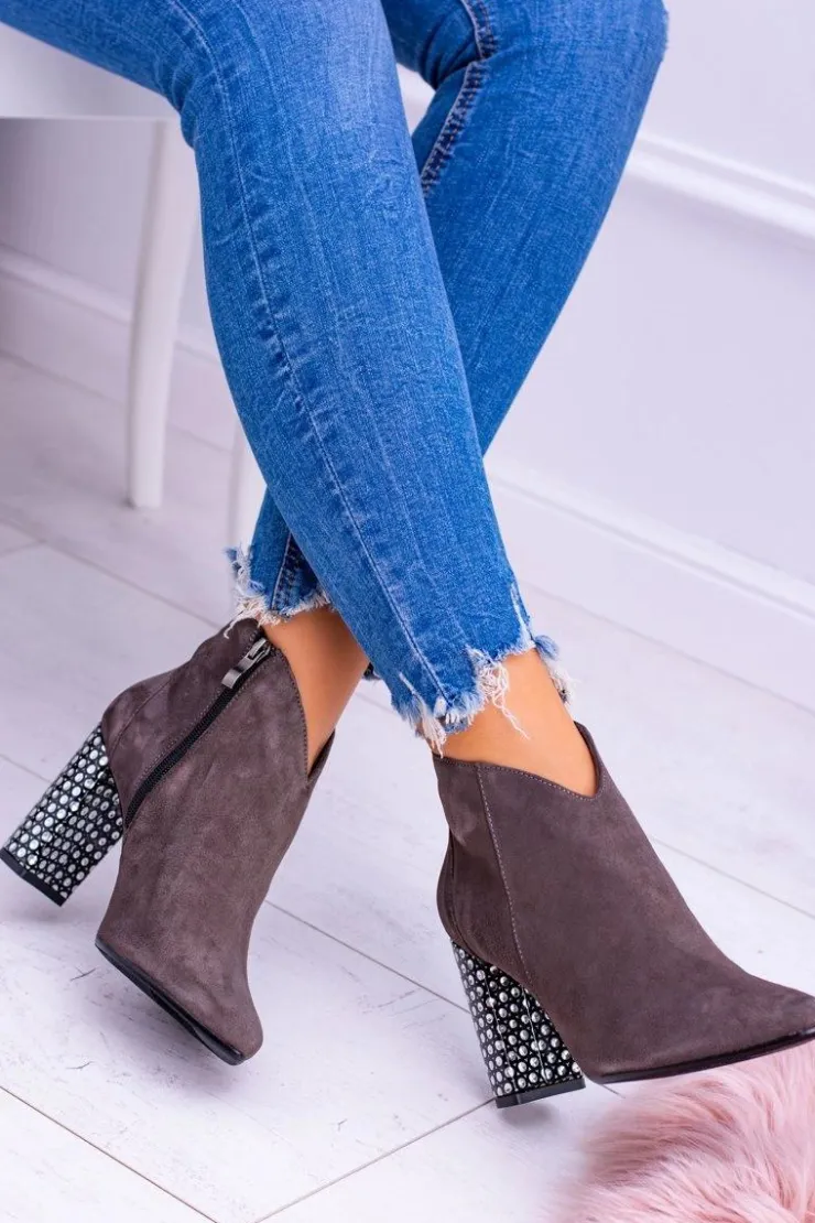 Niezwykle modne botki w tym sezonie! Wyjątkowy styl i eleganckie wykonanie sprawią że są jednym z najbardziej rozchwytywanych modeli tego sezonu! Wierzch wykonany z zamszu, a wkładka ocieplana kocem obuwniczym. Zastosowanie delikatnej wyściółki oraz stabilnego słupka podniesie uczucie komfortu. Klasyczny design i zawsze modny kolor – to coś co musisz mieć! Nie czekaj dłużej i kup teraz w doskonałej cenie!
