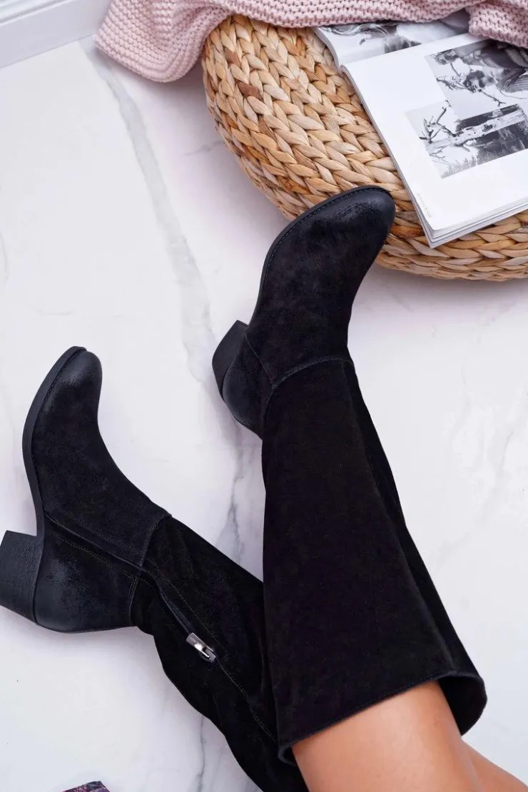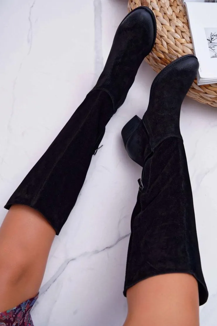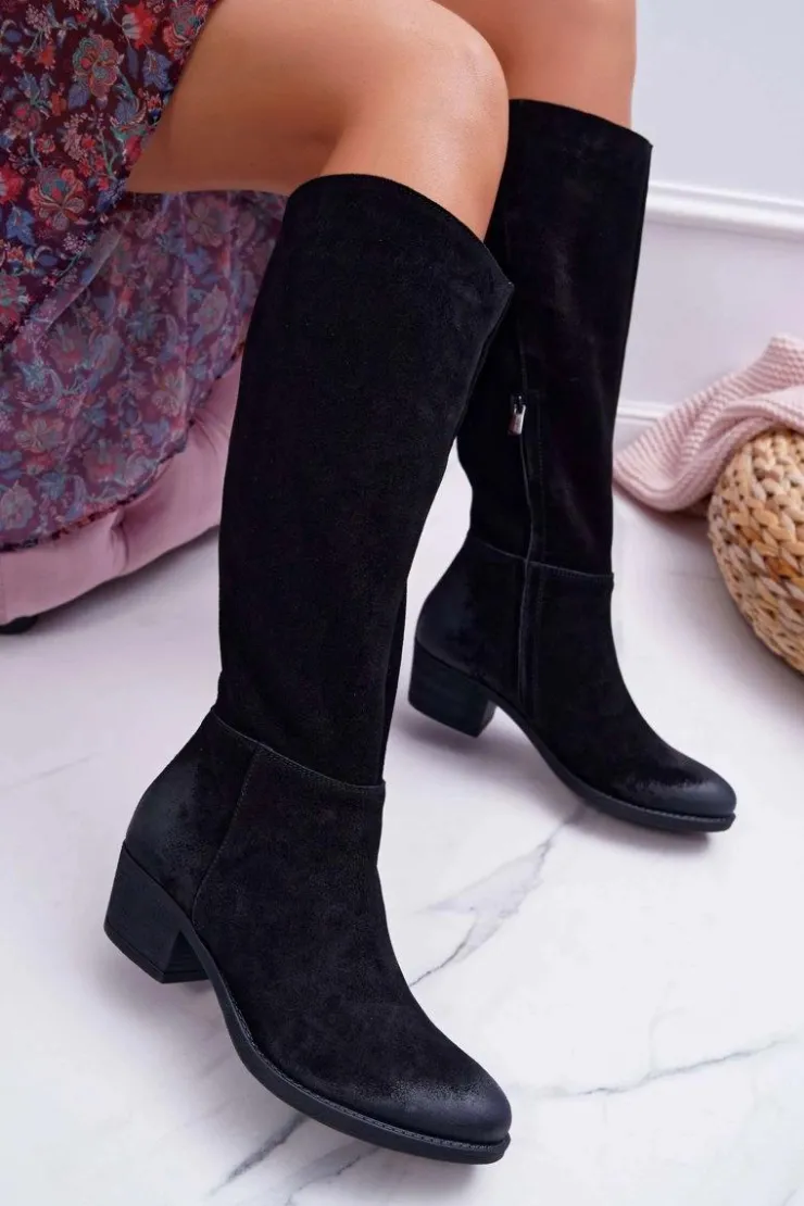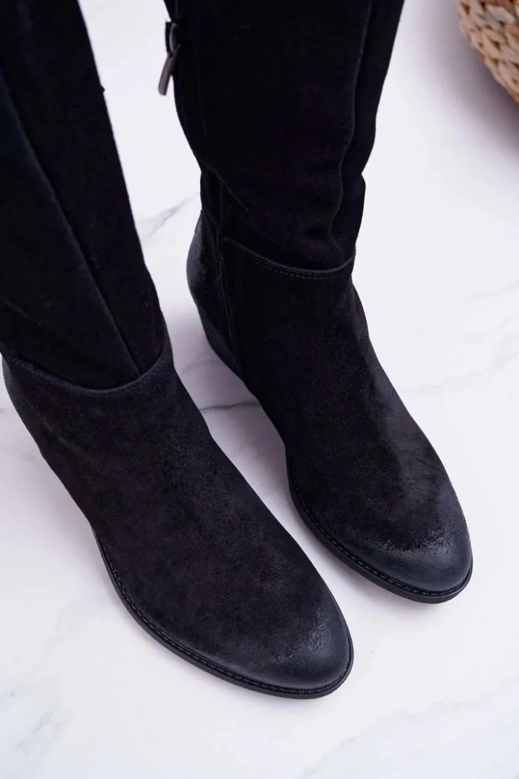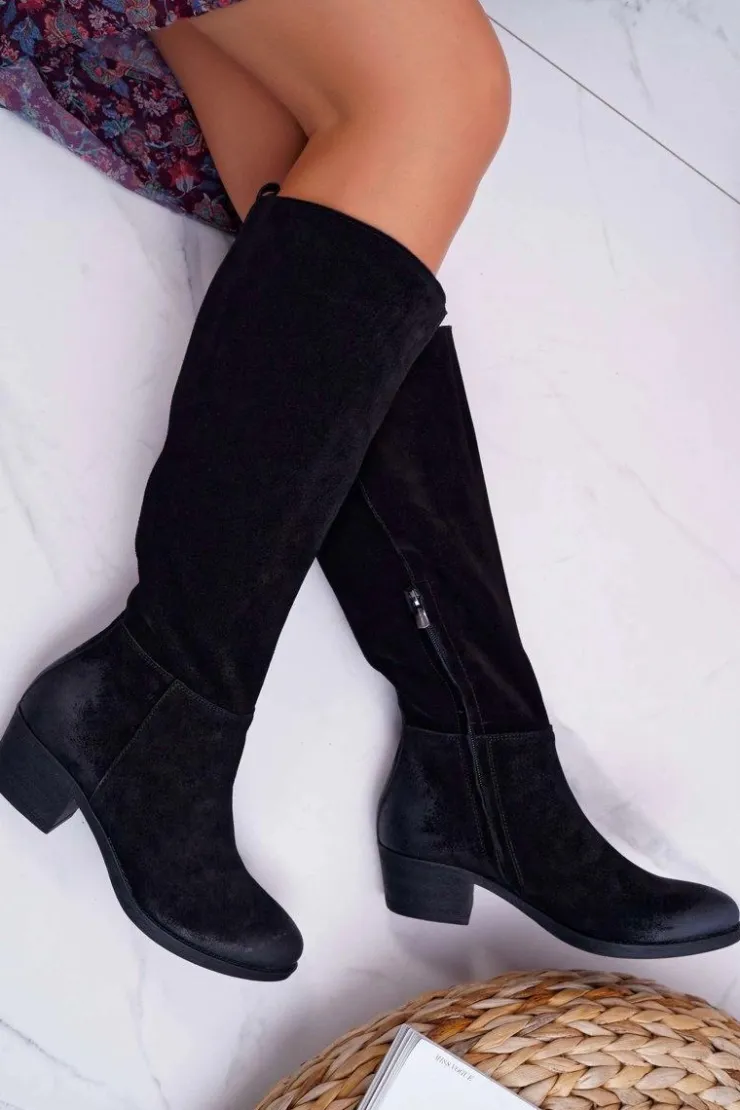 Damskie Laura Messi Kozaki Damskie 2071 Skóra Zamsz Czarne This Love