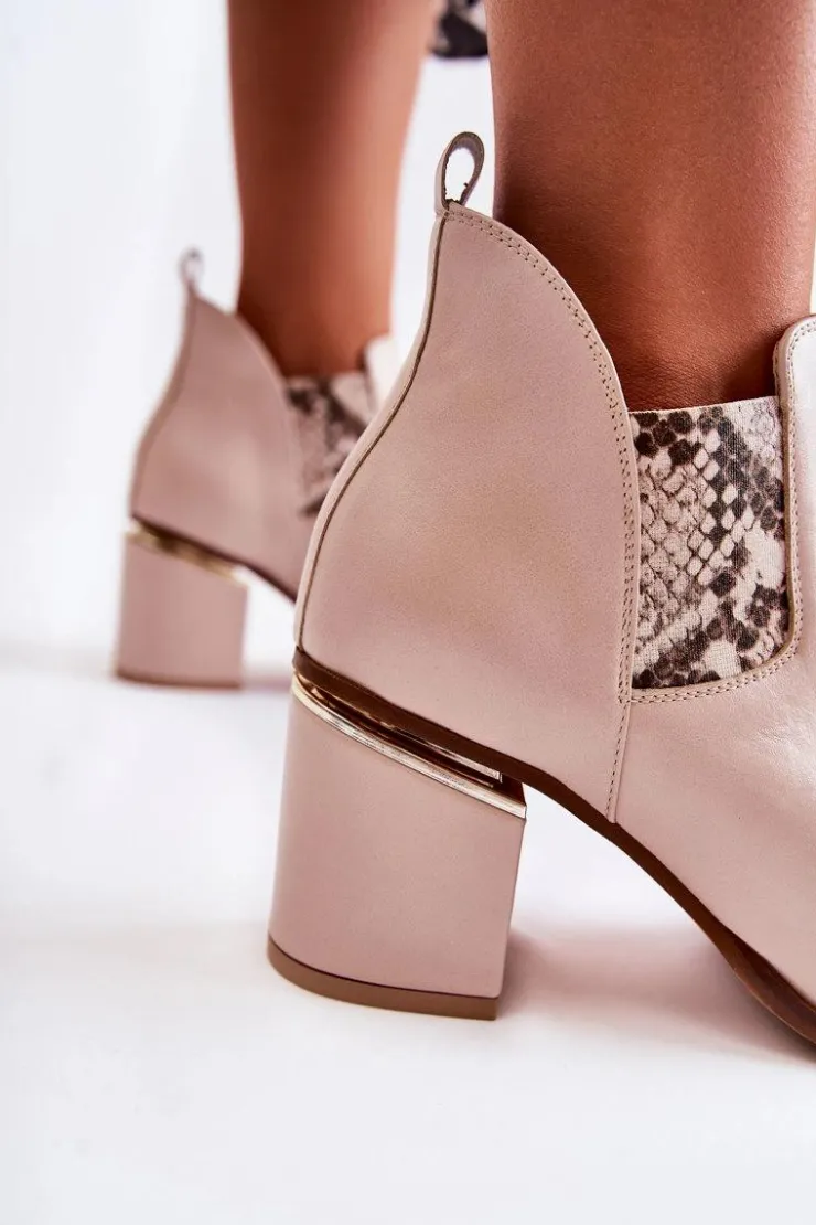 Eleganckie botki świetnie sprawdzą się podczas tworzenia stylizacji w chłodniejsze dni. Botki są wsuwane, z elastycznymi gumkami po bokach cholewki. W całości wykonane ze skóry naturalnej. Atutami tych botków jest przede wszystkim komfort noszenia oraz wysoka jakość wykonania. Dodatkowo posiadają usztywniany zapiętek oraz ozdobny obcas w postaci słupka. Przy wyborze rozmiaru prosimy sugerować się tabelą rozmiarów.