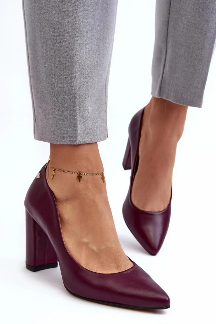 Eleganckie czółenka damskie wykonane ze skóry naturalnej z dbałością o każdy detal. Model ten osadzony jest na obcasie w postaci słupka. Noski w szpic optycznie wysmuklą nogi. Zapiętek jest usztywniony. Miękka, skórzana wkładka zapewni komfort podczas użytkowania. Przy wyborze rozmiaru prosimy sugerować się tabelą rozmiarów.