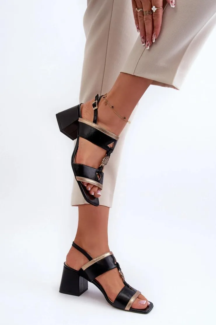 Sandały damskie wykonane ze skóry naturalnej. Osadzone na obcasie w postaci klocka. Zapinane na regulowany pasek ze sprzączką. Model ten będzie pasować do eleganckich spodni, sukienek i spódnic. Przy wyborze rozmiaru prosimy sugerować się tabelą rozmiarów.
