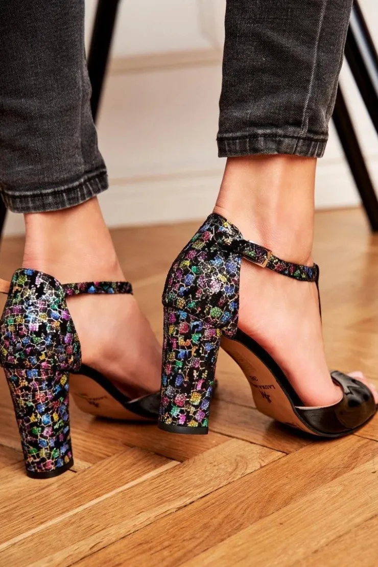 Damskie Laura Messi Skórzane Sandały Na Słupku 1916 Lakierowane Czarne