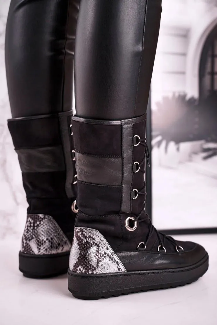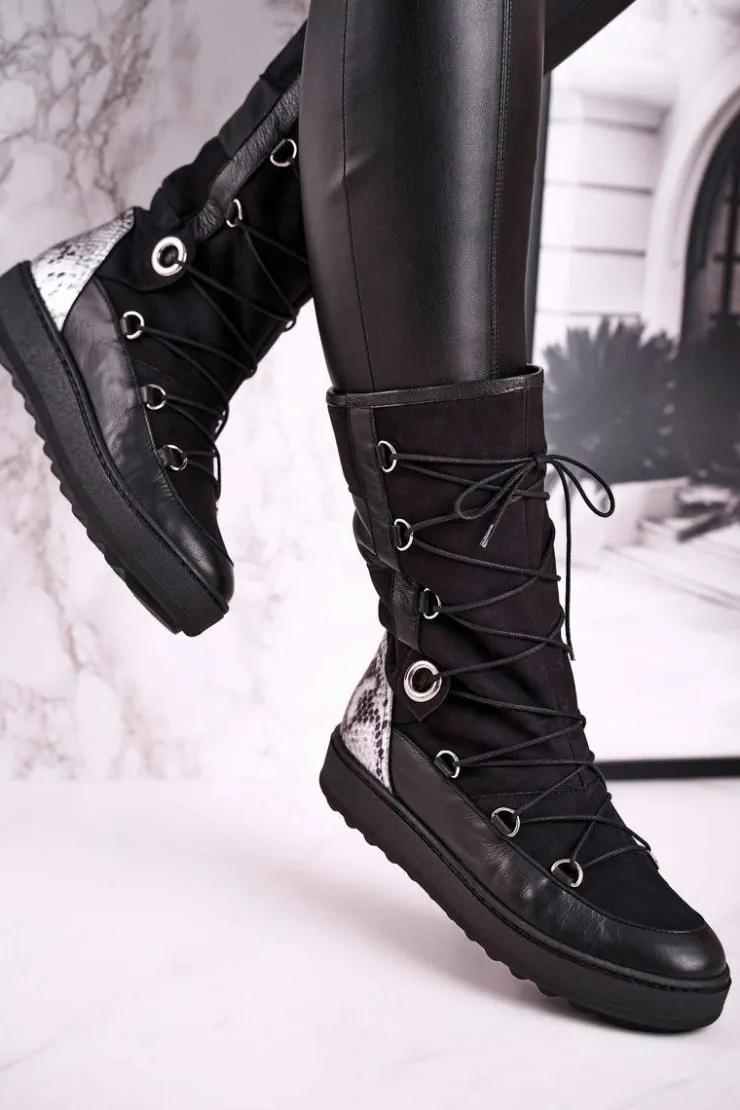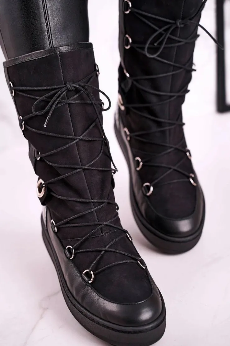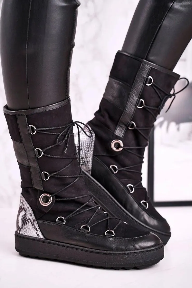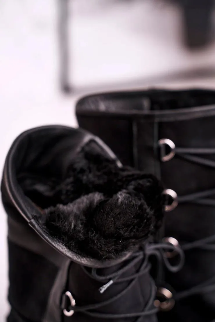 Damskie Laura Messi Śniegowce Zamszowe z Futerkiem Czarne 2054