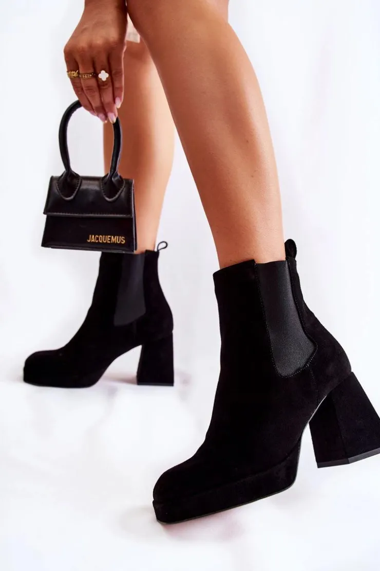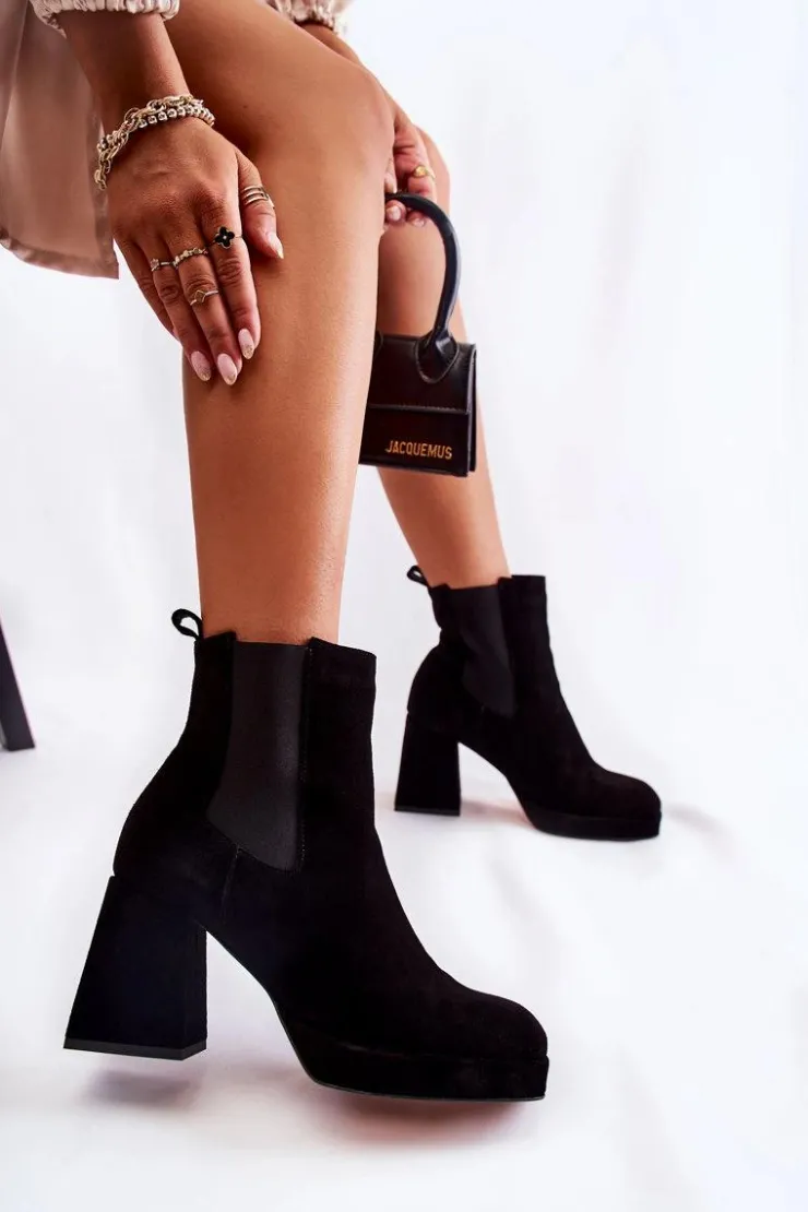 Ten cudowny model świetnie sprawdzi się podczas tworzenia stylizacji w chłodniejsze dni! Botki są wsuwane, z elastycznymi gumkami po bokach cholewki. W całości wykonane ze naturalnego zamszu. Są niezwykle komfortowe w użytkowaniu, dzięki masywnemu obcasowi w postaci klocka. Dodatkowo posiadają usztywniany zapiętek i delikatną platformę. Wnętrze ocieplone kocem obuwniczym. Przy wyborze rozmiaru prosimy sugerować się tabelą rozmiarów.