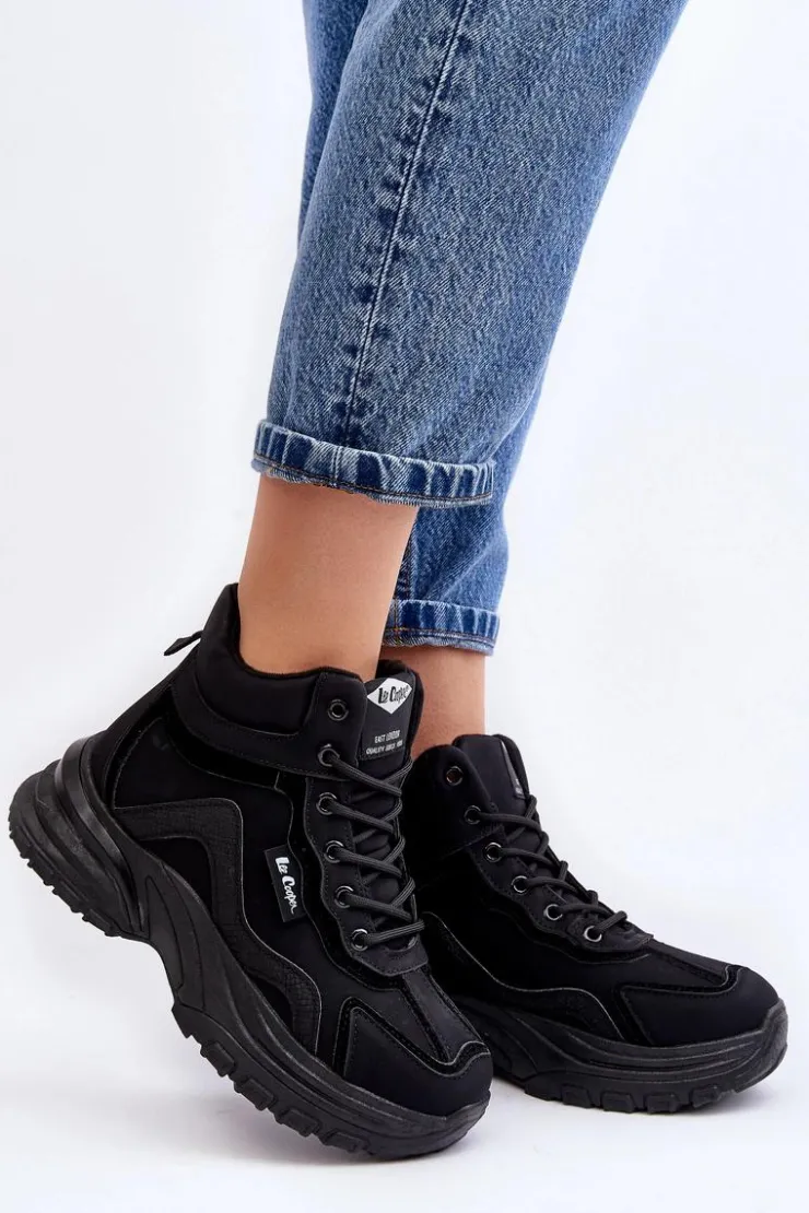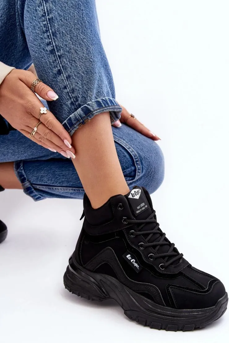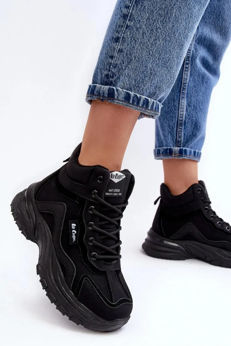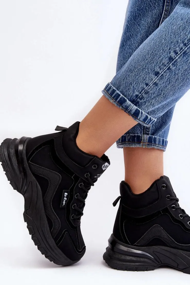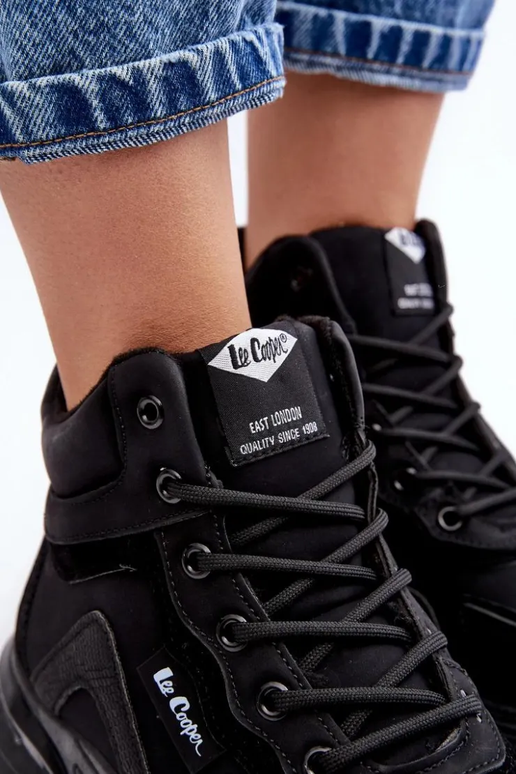 Botki damskie marki Lee Cooper zostały wykonane z eko skóry. Osadzone na grubej podeszwie, która dobrze izoluje i amortyzuje od podłoża. Model klasycznie sznurowany. Środek ocieplony futerkiem. Dodatkowo zapiętek i nosek jest usztywniony. Przy wyborze rozmiaru prosimy sugerować się tabelą rozmiarów.