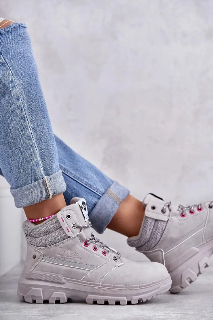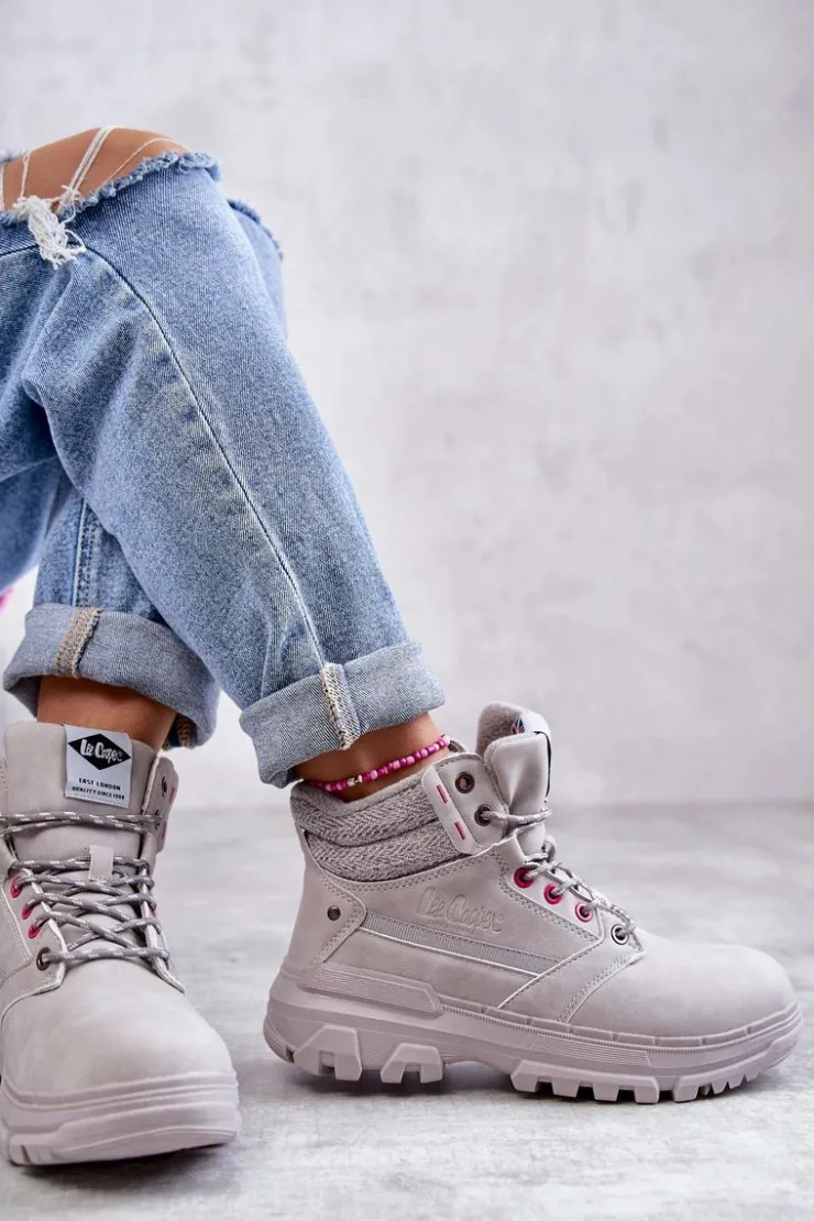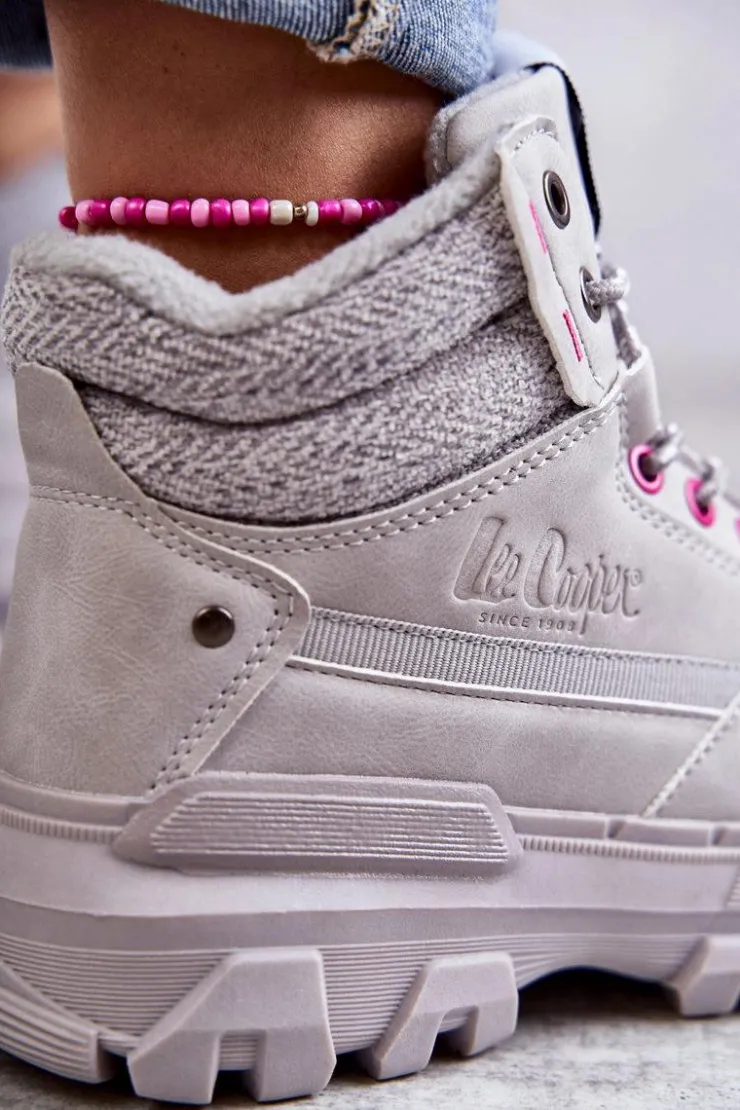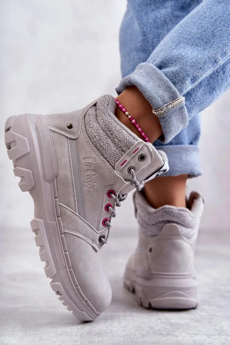 Trapery damskie wykonane z ekologicznej skóry z usztywnianym zapiętkiem. Buty zostały osadzone na płaskim obcasie i masywnej platformie, co sprawia, że są niezwykle stabilne. Posiadają wewnątrz ocieplenie w postaci polaru. Wkładka jest miękka i wygodna, a także ocieplona. Trapery te doskonale sprawdzą się podczas jesiennych, chłodnych dni. Przy wyborze rozmiaru prosimy sugerować się tabelą rozmiarów.