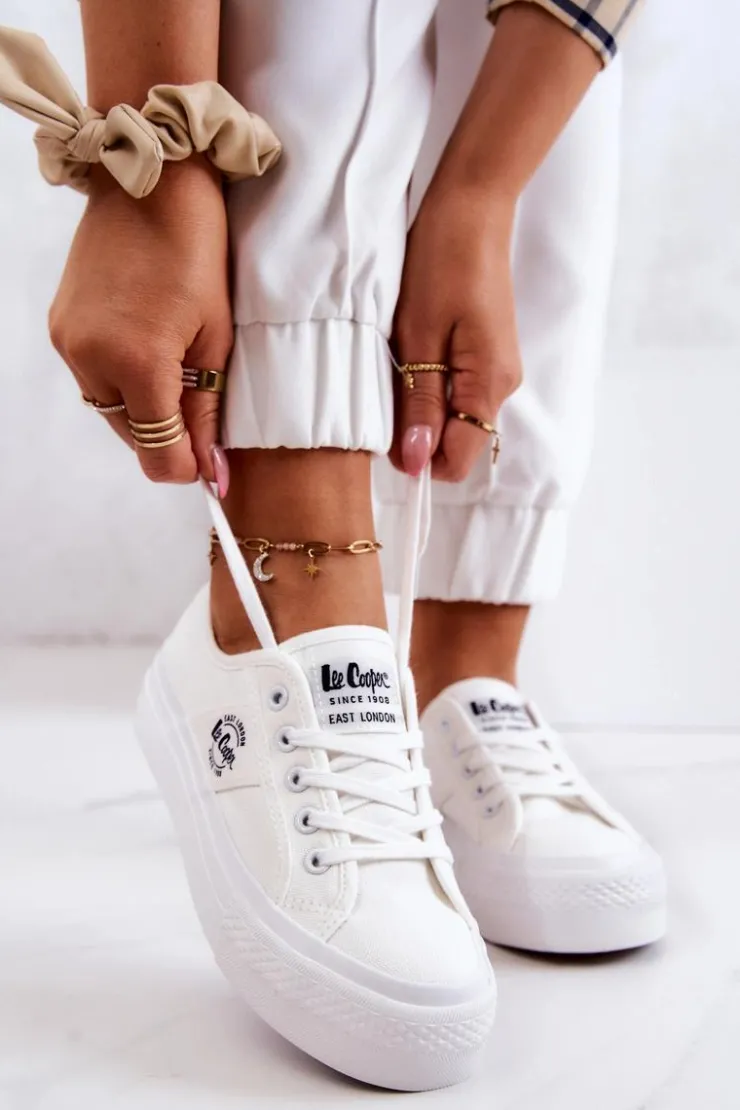 Damskie tenisówki na masywnej platformie marki Lee Cooper. Kultowe już trampki pasują do wielu stylizacji. Buty dobrze dopasowują się do kształtu stopy, posiadają miękką, materiałową wkładkę oraz antypoślizgową podeszwę. Koniecznie sprawdź całą naszą kolekcję butów Lee Cooper. Przy wyborze rozmiaru prosimy sugerować się tabelą rozmiarów.