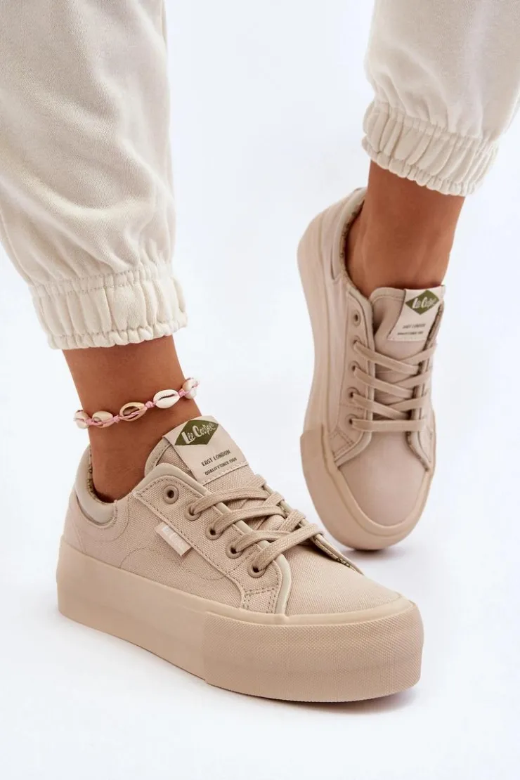 Trampki na masywnej platformie marki Lee Cooper to odpowiedni wybór dla osób ceniących sobie wygodę oraz styl! Wykonane z materiału tekstylnego. Miękka wkładka zapewni komfort podczas użytkowania. Noski zaokrąglone. Z boku wszyte małe logo. Ten klasyczny fason idealnie dopełni wiele wiosenno-letnich stylizacji! Przy wyborze rozmiaru prosimy sugerować się poniższą tabelą rozmiarów.