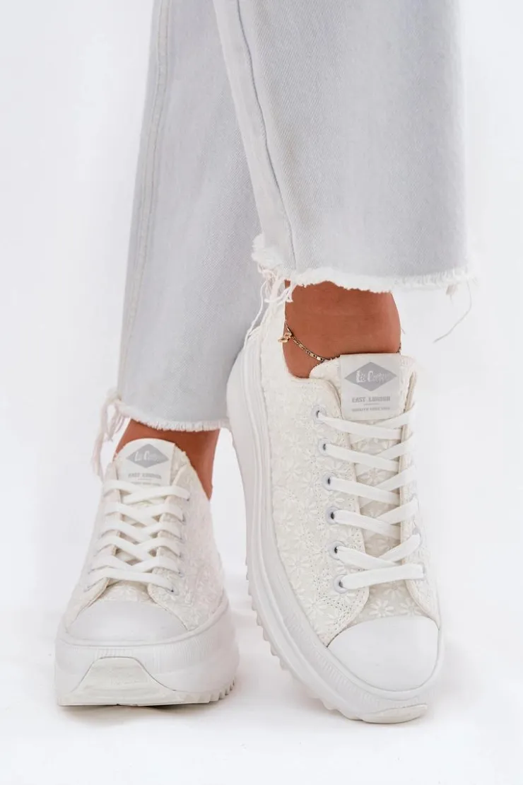 Damskie trampki od marki Lee Cooper to połączenie stylu i wygody. Osadzone na masywnej platformie, zapewniają stabilność oraz lekkość przez cały dzień. Cholewka ozdobiona subtelnym haftem nadaje im wyjątkowego charakteru, a klasyczne sznurowanie umożliwia idealne dopasowanie do stopy. Zaokrąglone noski gwarantują komfort przy każdym kroku. Te trampki doskonale pasują do casualowych oraz tych bardziej eleganckich stylizacji, dodając im modnego i oryginalnego akcentu. Przy wyborze rozmiaru prosimy sugerować się poniższą tabelą rozmiarów.
