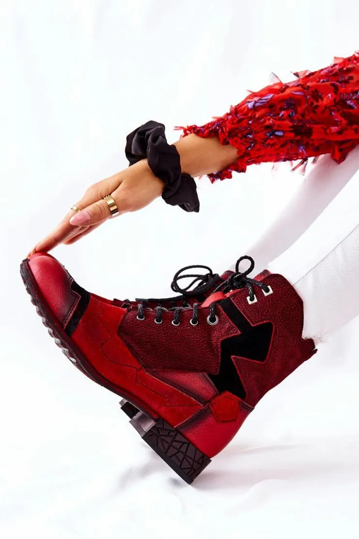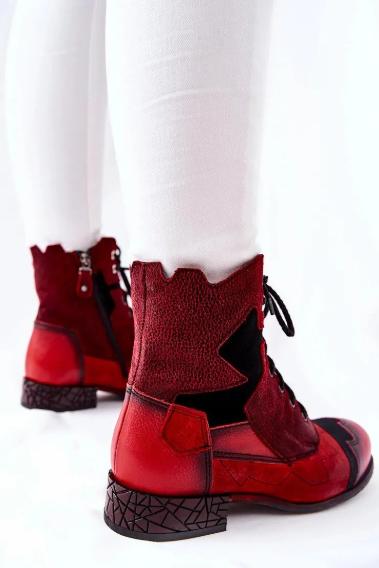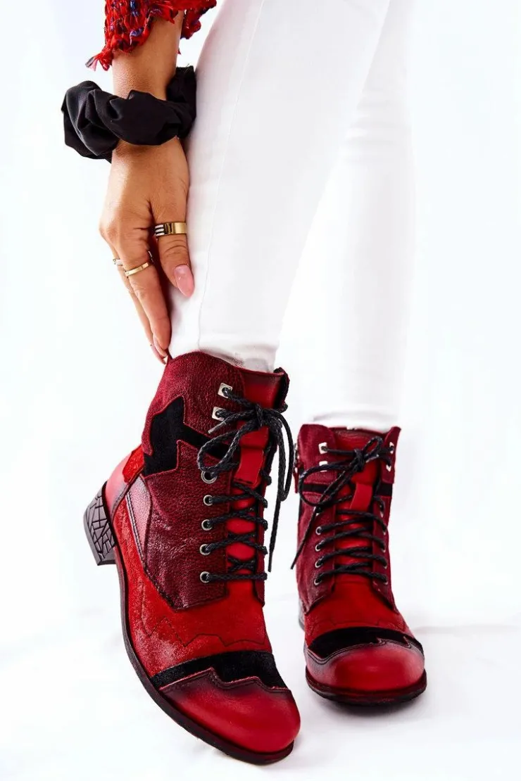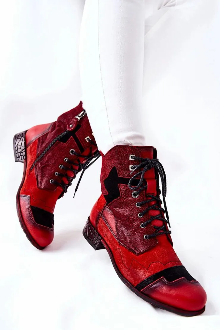 Damskie Maciejka Botki Damskie Skórzane Ocieplane Czerwone 04625-08