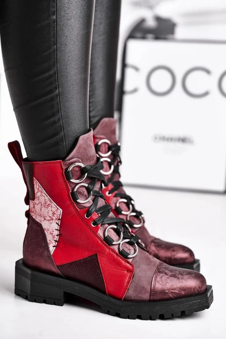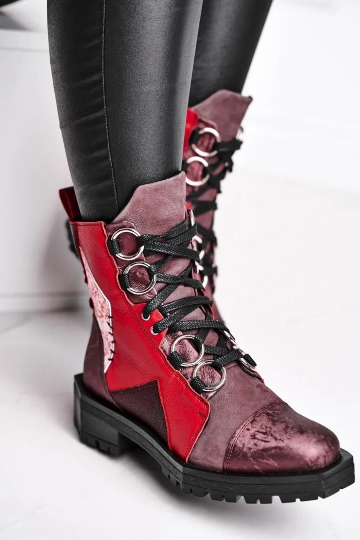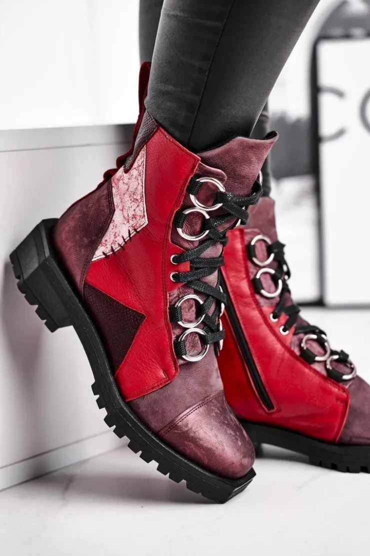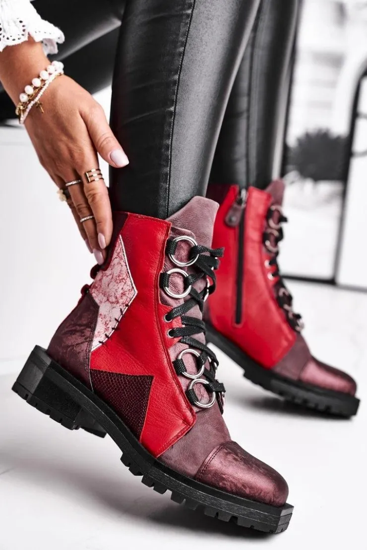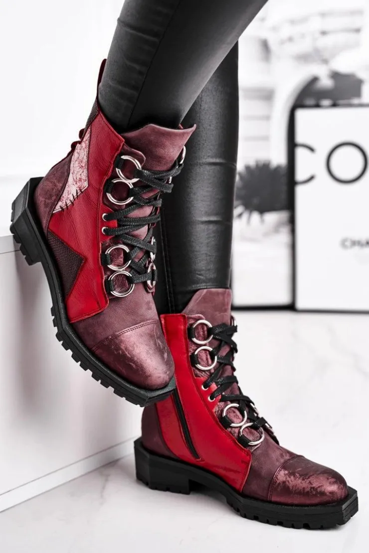 Damskie Maciejka Botki Damskie Skórzane Trzewiki Bordowe 04184-23/00-3