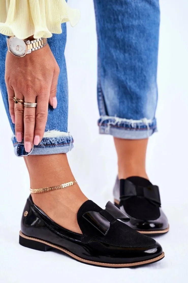 Damskie Maciejka Damskie Półbuty Lakierowane Loafery Czarne 04099-01/00-5