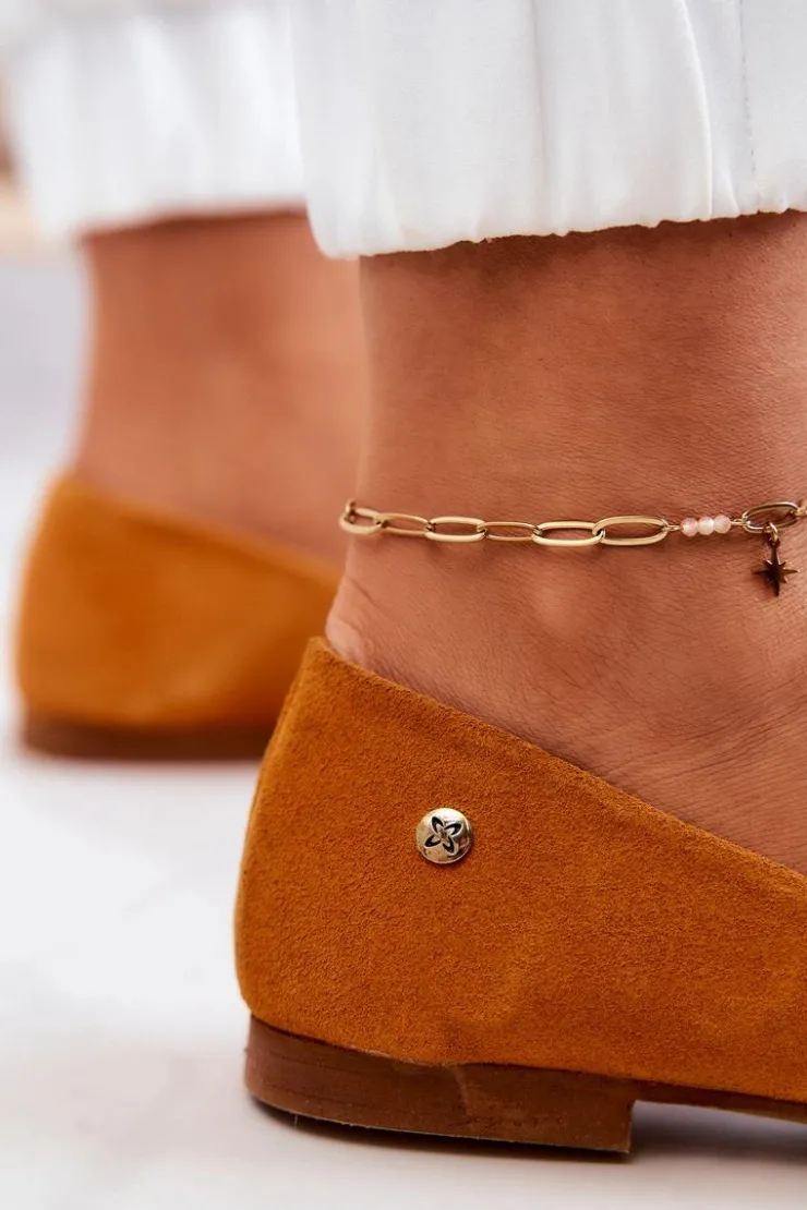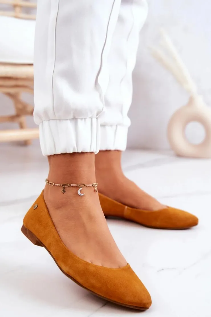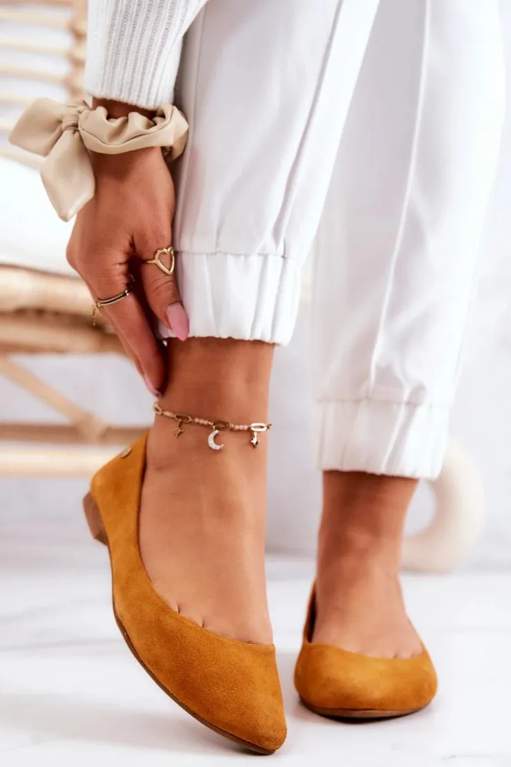 Damskie Maciejka Damskie Zamszowe Baleriny 04100-44 Ciemnożółte