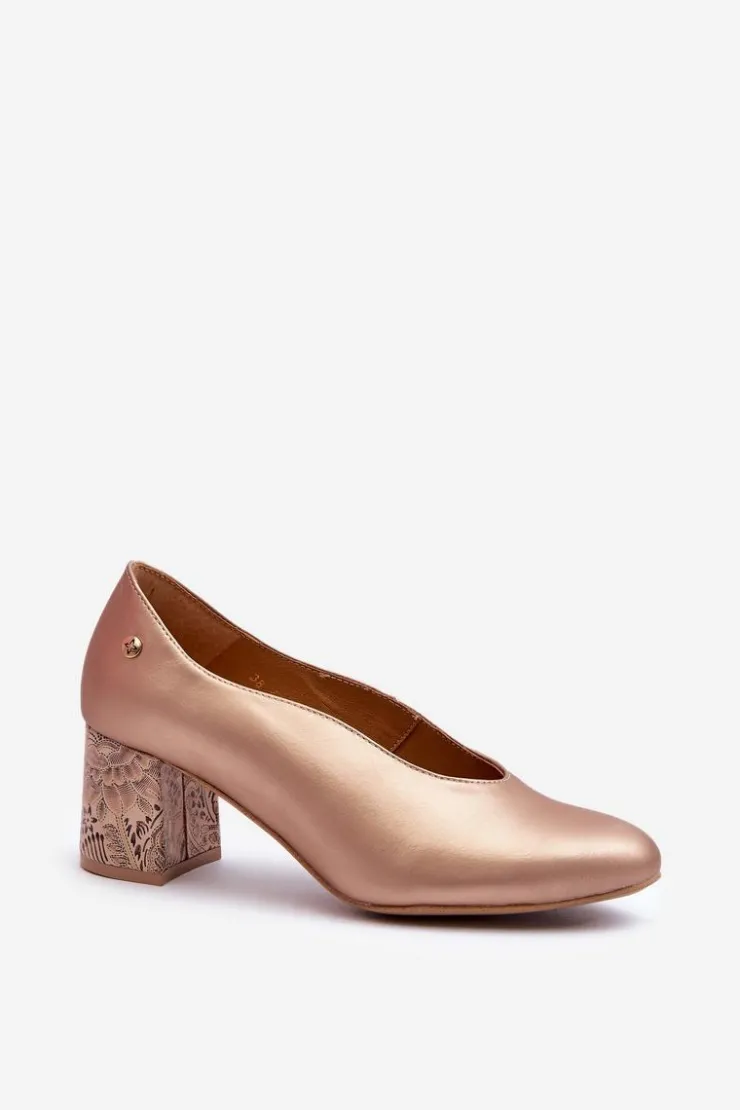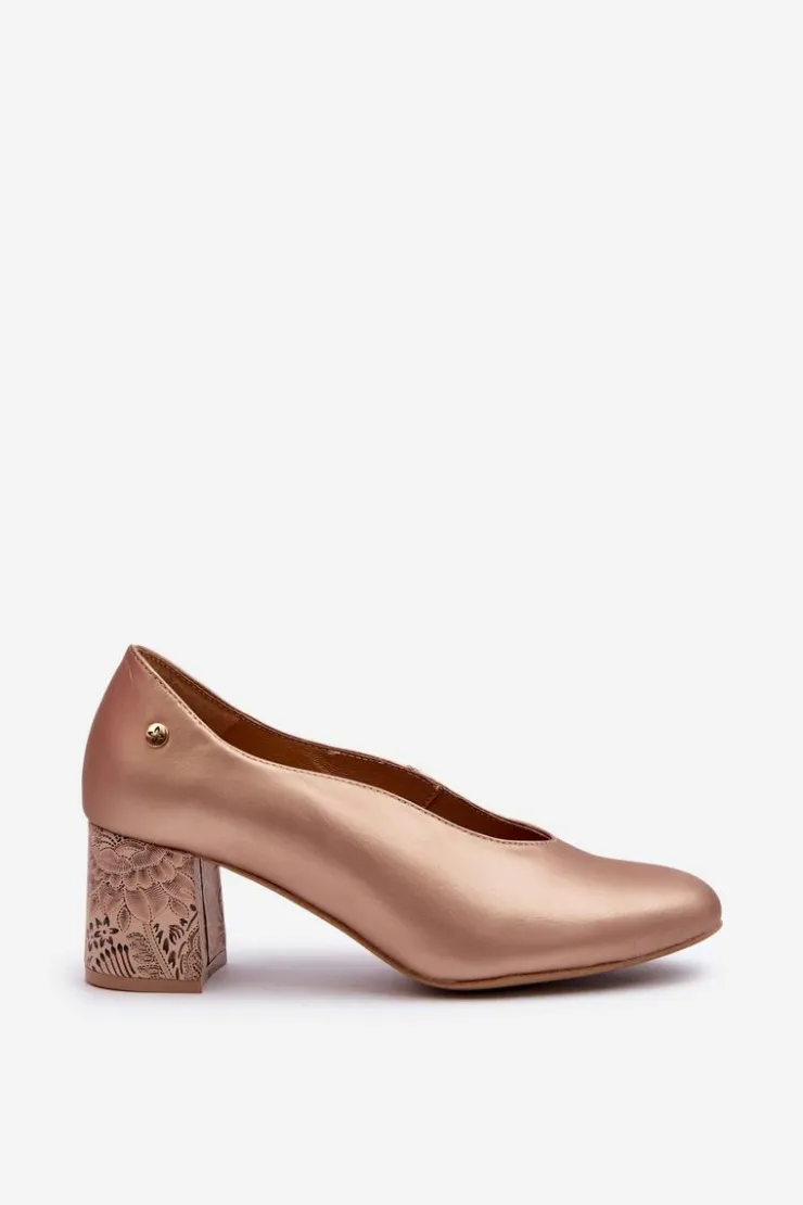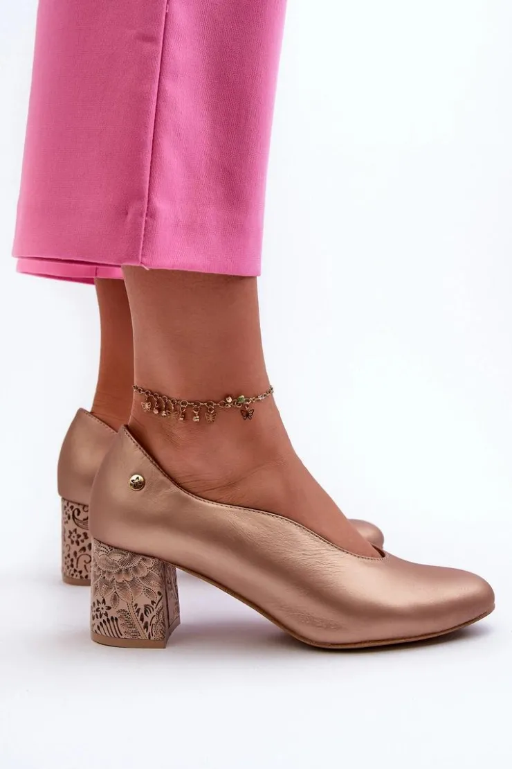 Eleganckie czółenka damskie od marki Maciejka. Wykonane ze skóry naturalnej, zapewniają trwałość i komfort noszenia. Zaokrąglone noski nadają im klasyczny wygląd, który pasuje do wielu stylizacji. Dodatkowo obcas w formie słupka z kwiatowym wzorem dodaje im subtelności i uroku. Te czółenka to idealny wybór dla kobiet ceniących sobie zarówno wygodę, jak i modny wygląd. Przy wyborze rozmiaru prosimy sugerować się tabelą rozmiarów.