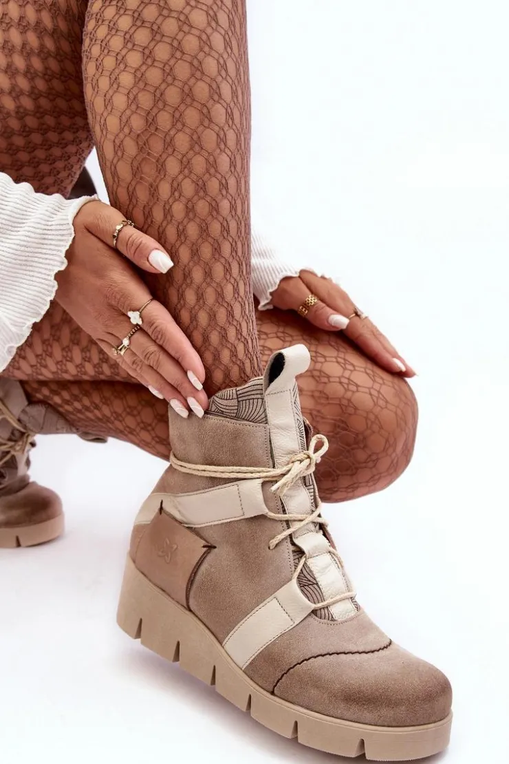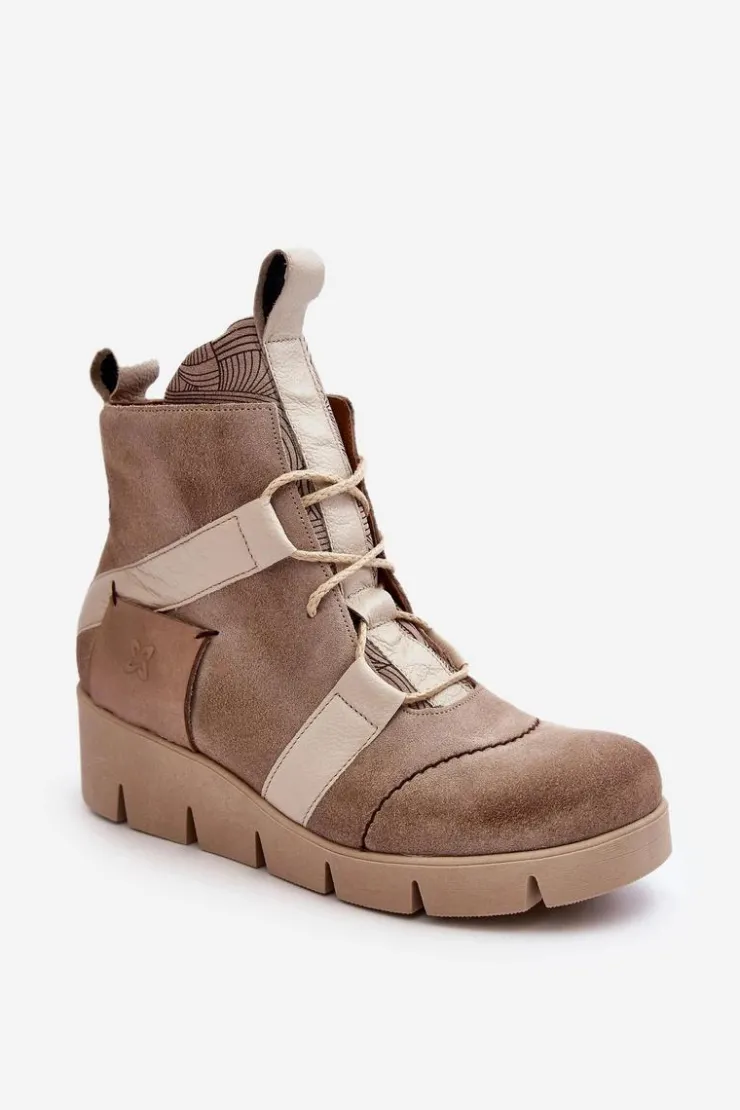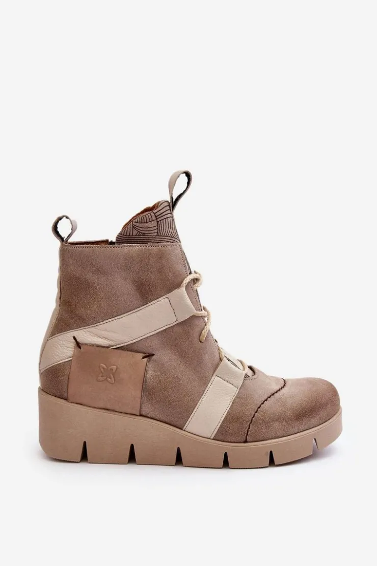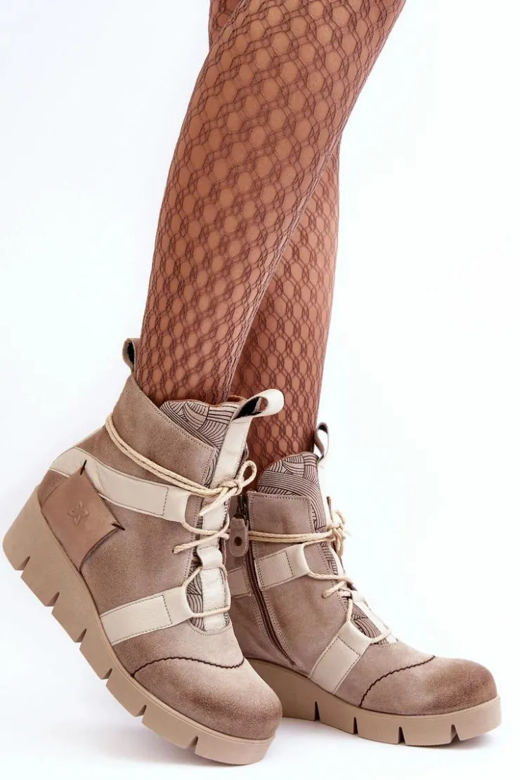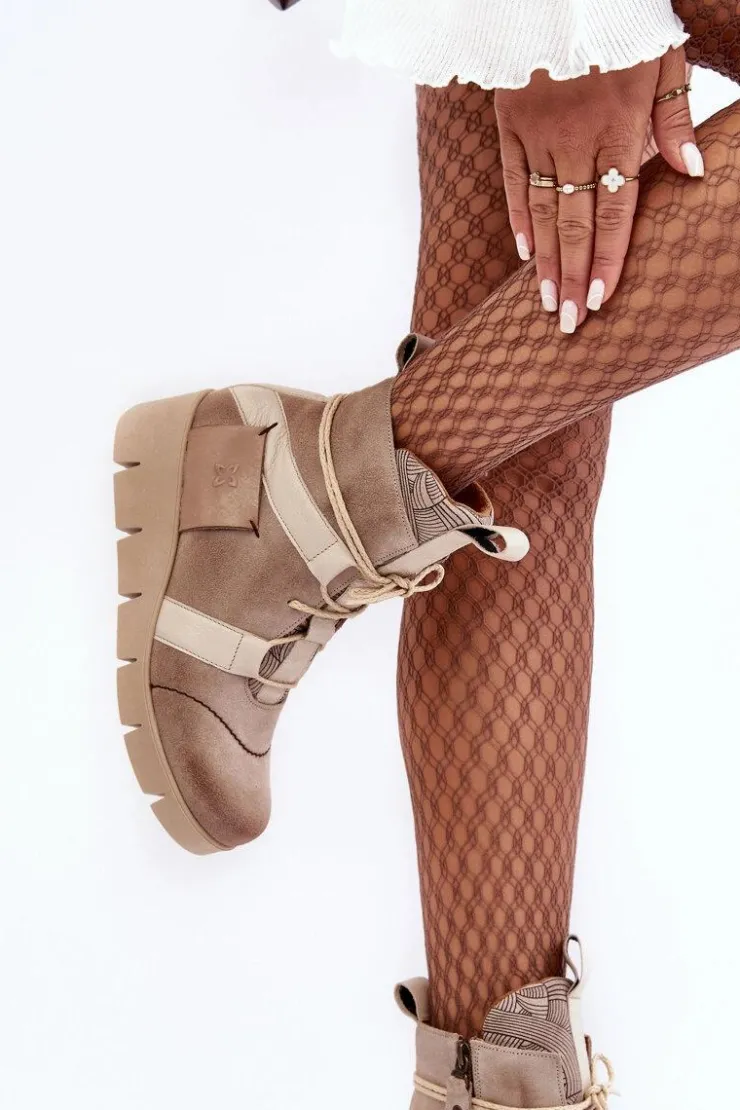 Botki damskie marki Maciejka zostały wykonane z najwyższej jakości skór naturalnych. Zapinane na suwak oraz wzbogacone dodatkowym sznurowaniem. Model ten osadzony został na koturnie. Miękka wkładka zapewni komfort podczas użytkowania. Przy wyborze rozmiaru prosimy sugerować się tabelą rozmiarów.