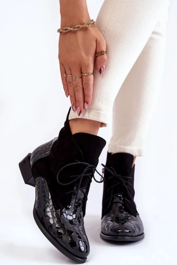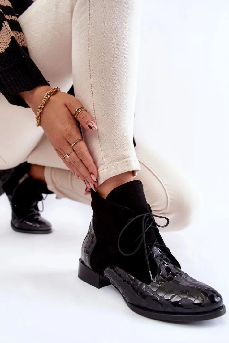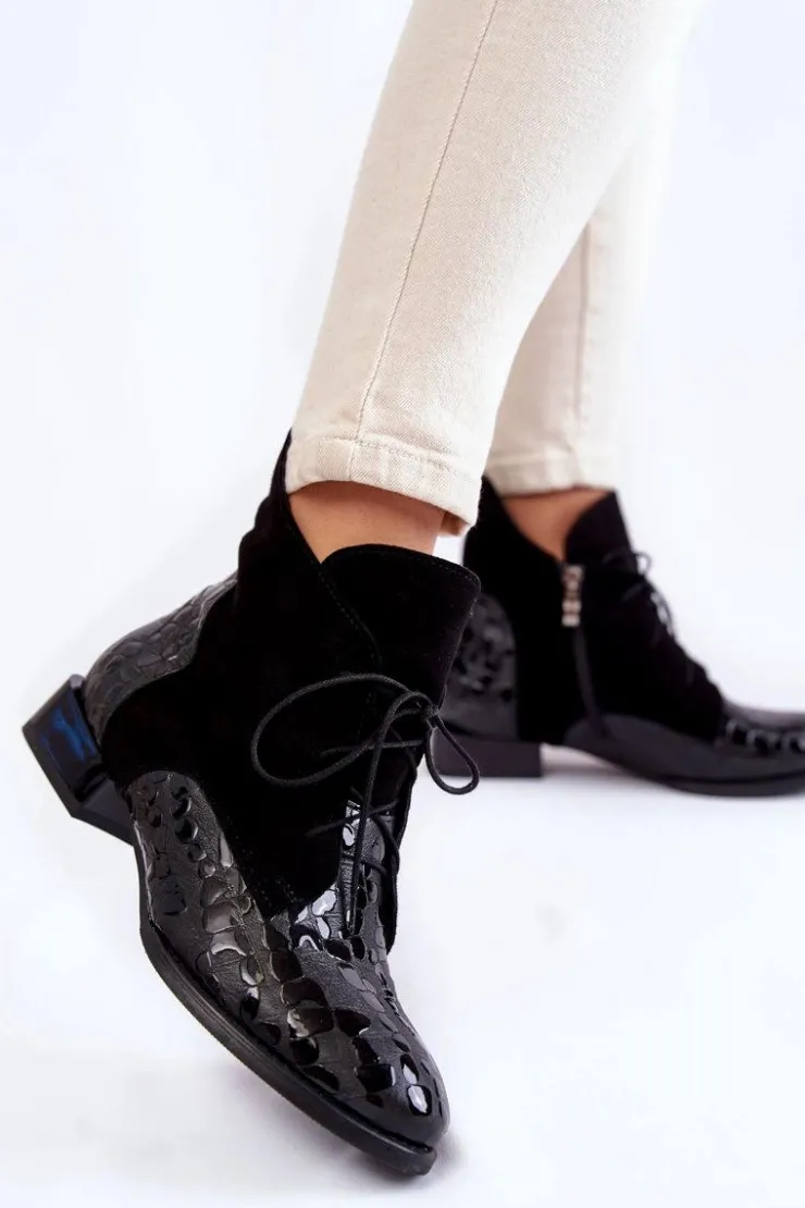 Modne botki damskie wykonane ze skór wysokiej jakości z dbałością o szczegóły. Osadzone na płaskim obcasie. Botki sznurowane z dodatkowym suwakiem. Niezwykły fason dodatkowo posiada usztywniany zapiętek. Wewnątrz zostały ocieplone kocem obuwniczym. Koniecznie sprawdź także pozostałe modele botków od marki Maciejka! Przy wyborze rozmiaru prosimy sugerować się tabelą rozmiarów.