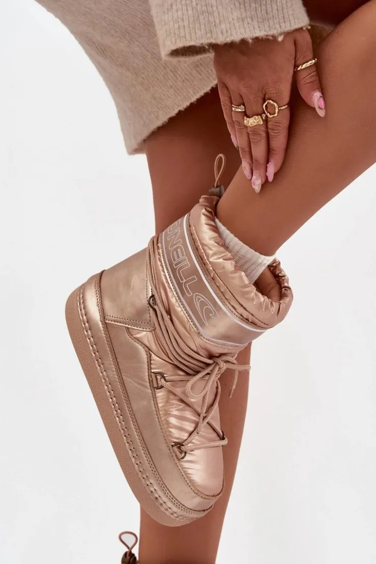 Śniegowce damskie marki O’NEILL to doskonały wybór na zimowe dni, gdy liczy się ciepło, wygoda i ochrona przed trudnymi warunkami pogodowymi. Wykonane z wysokiej jakości materiałów odpornych na wiatr i mróz. Wnętrze butów zostało ocieplone, dzięki czemu stopy pozostają ciepłe i chronione przed chłodem. Solidna podeszwa z gumowego tworzywa zapewnia stabilność oraz bardzo dobrą przyczepność do podłoża, co jest szczególnie ważne na śniegu czy lodzie. Model wsuwany ułatwia szybkie zakładanie, a dodatkowe wiązanie pozwala lepiej dopasować obuwie do stopy, zwiększając komfort noszenia. To praktyczne i stylowe śniegowce, które świetnie sprawdzą się zarówno w codziennym użytkowaniu, jak i podczas zimowych wyjazdów. Przy wyborze rozmiaru prosimy sugerować się tabelą rozmiarów.