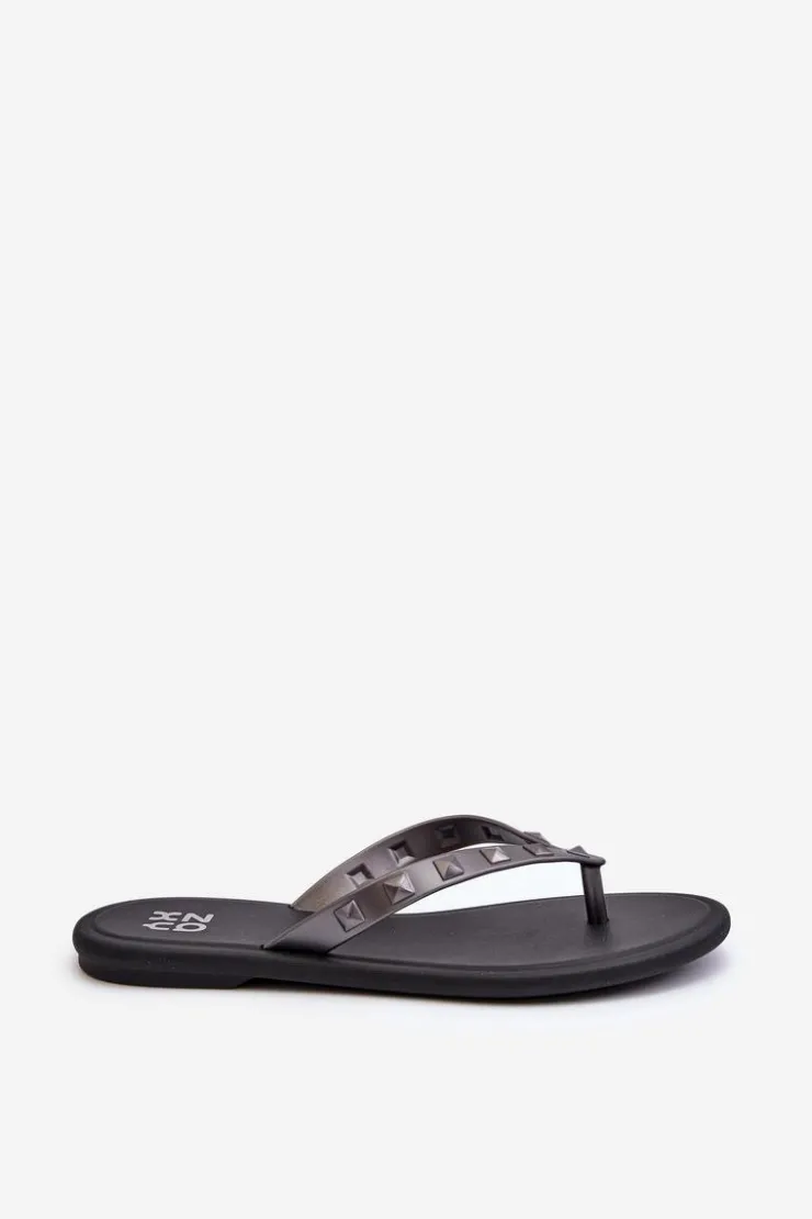 Damskie ZAXY Płaskie Elastyczne Klapki Japonki Damskie JJ285297 Szaro-Czarne