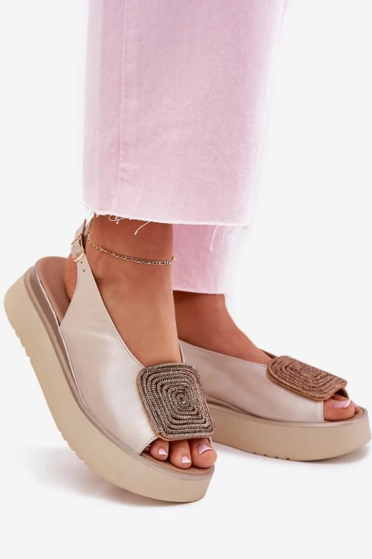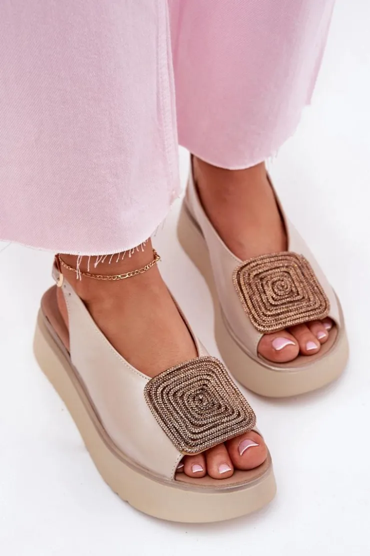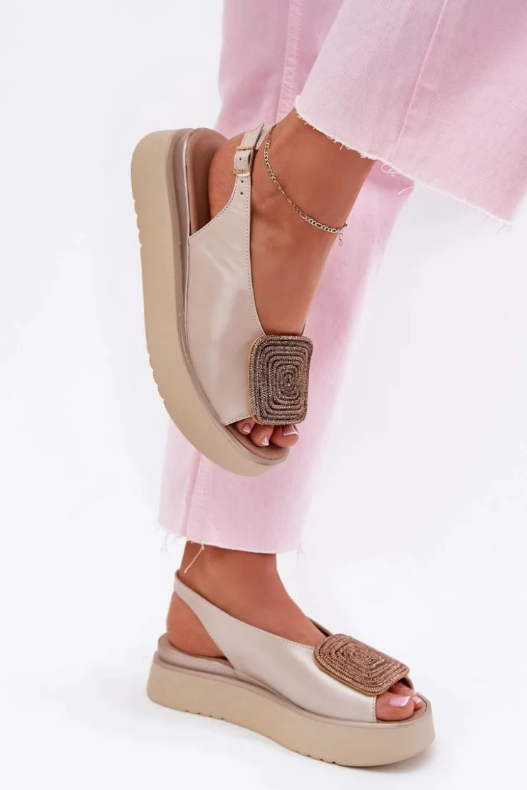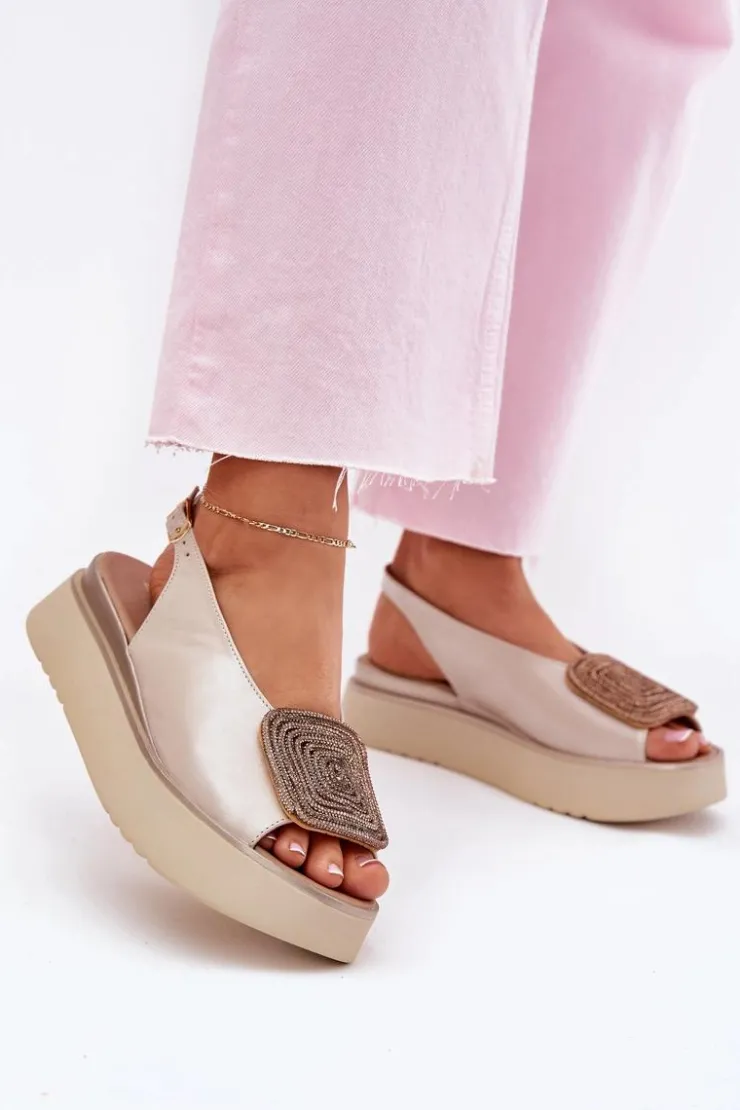 Damskie Zazoo 1786 Skórzane Sandały Damskie Na Platformie Z Ozdobą Perłowy Beż
