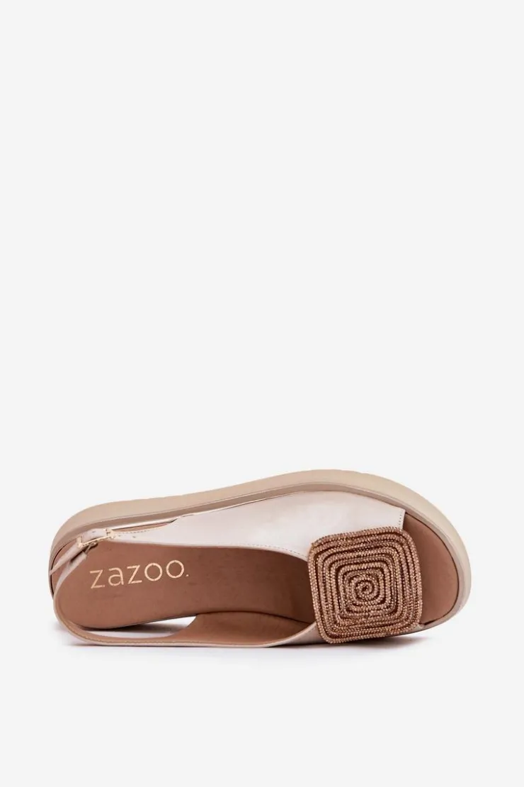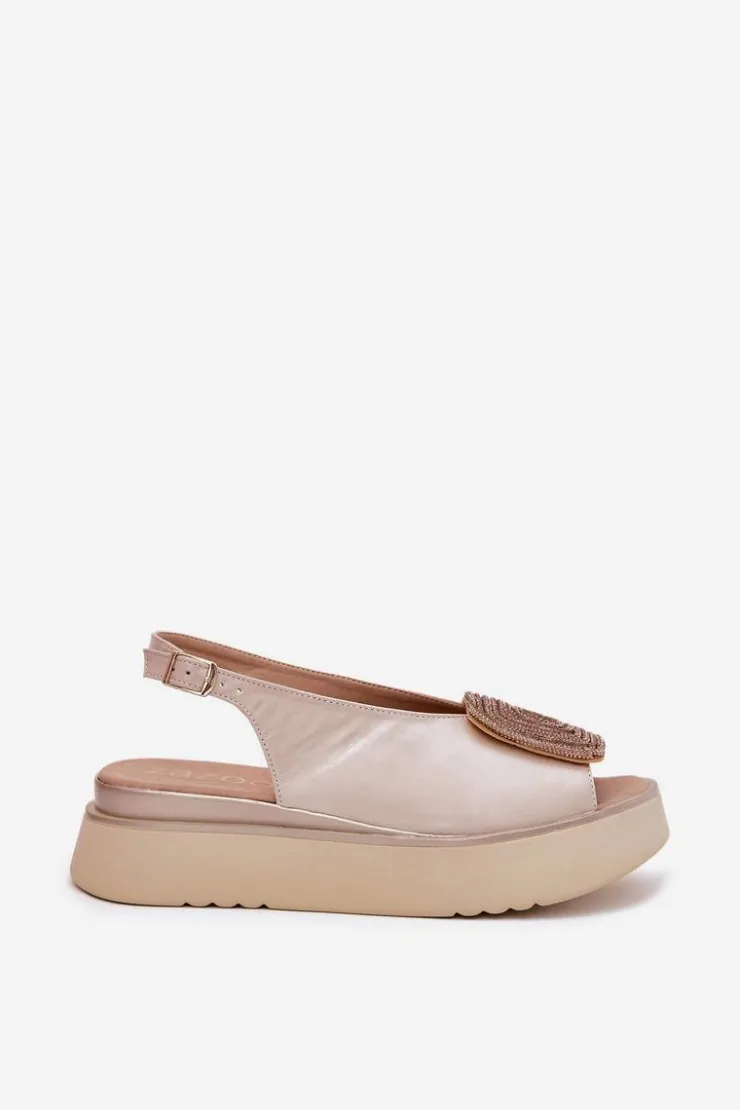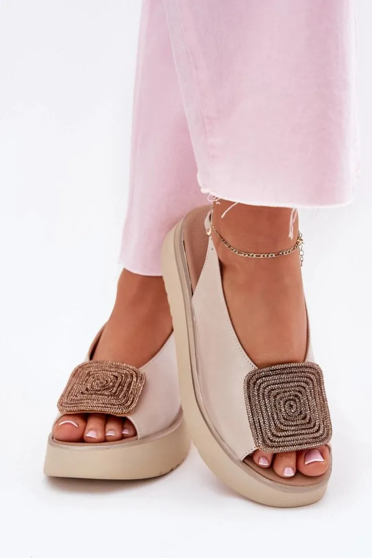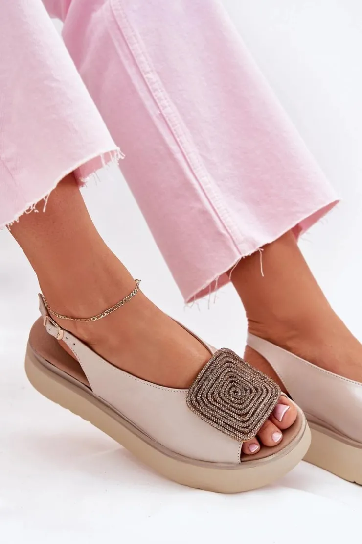 Damskie Zazoo 1786 Skórzane Sandały Damskie Na Platformie Z Ozdobą Perłowy Beż