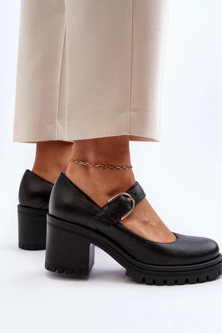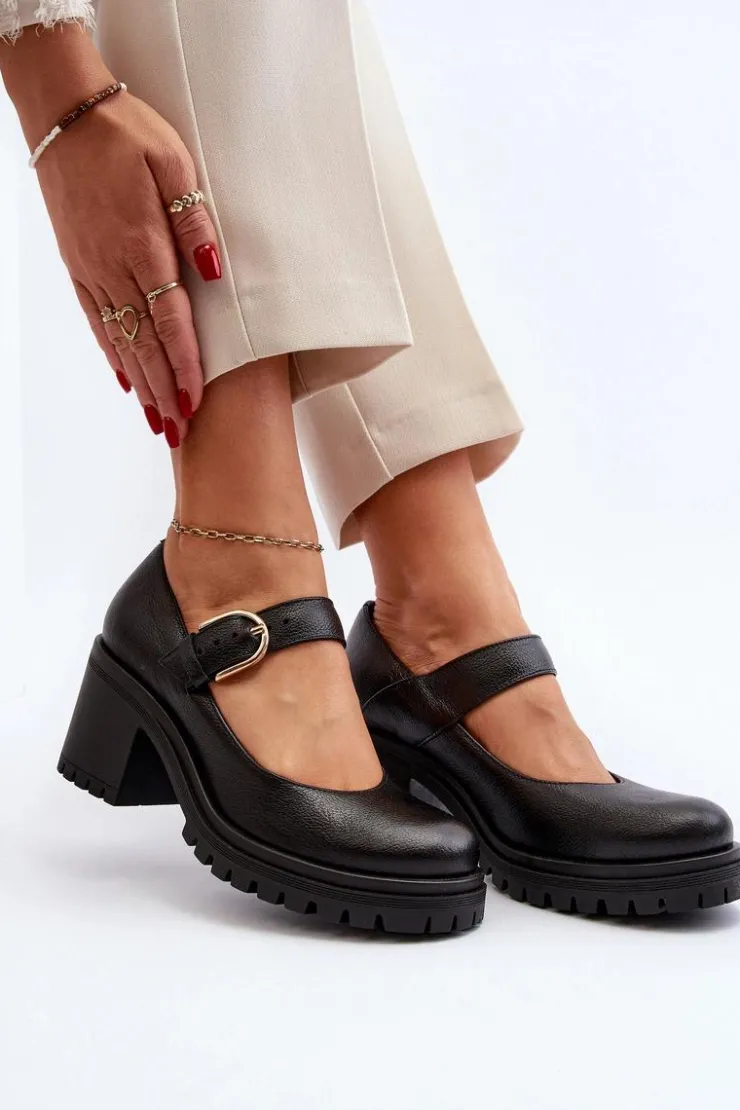 Eleganckie czółenka wykonane z naturalnej skóry z dbałością o każdy detal. Miękka wkładka ze skóry naturalnej zapewni komfort podczas użytkowania. Noski zaokrąglone. Zapinane na regulowany pasek ze sprzączką. Masywny obcas zapewni stabilność na każdym kroku. Ten niezwykle modny fason koniecznie powinien znaleźć się w Twojej wiosennej garderobie! Przy wyborze rozmiaru prosimy sugerować się tabelą rozmiarów.