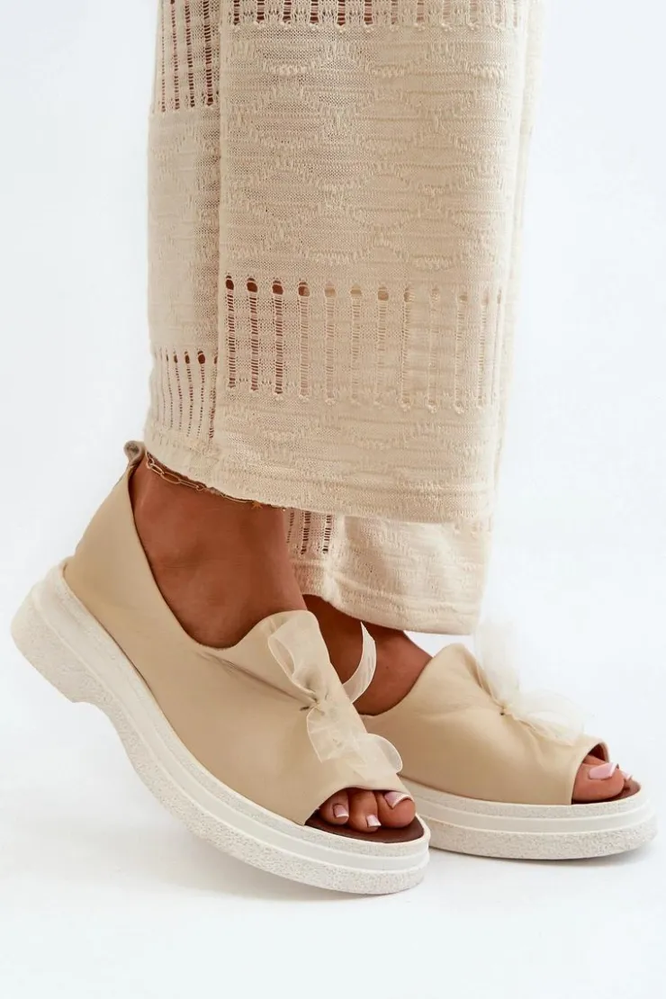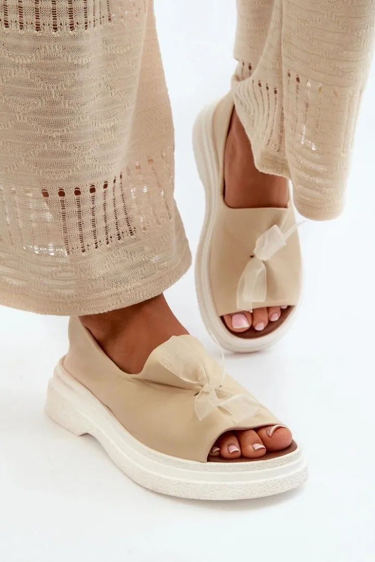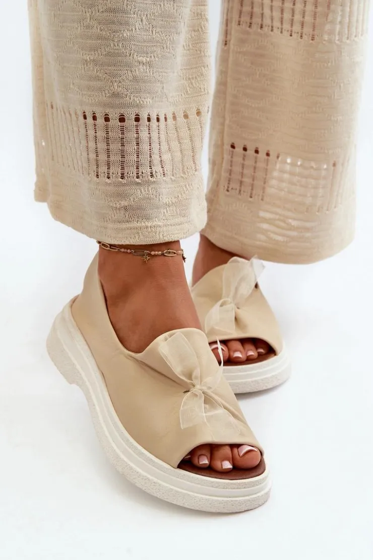 Damskie sandały wykonane ze skóry naturalnej to elegancki i komfortowy wybór na ciepłe dni. Osadzone na grubej, solidnej podeszwie, zapewniają stabilność i wygodę noszenia przez cały dzień. Miękka, skórzana wkładka dodatkowo zwiększa komfort użytkowania. Przód sandałów ozdobiony uroczą kokardką dodaje im subtelnego uroku i sprawia, że stanowią stylowy element każdej letniej stylizacji. Przy wyborze rozmiaru prosimy kierować się tabelą rozmiarów.