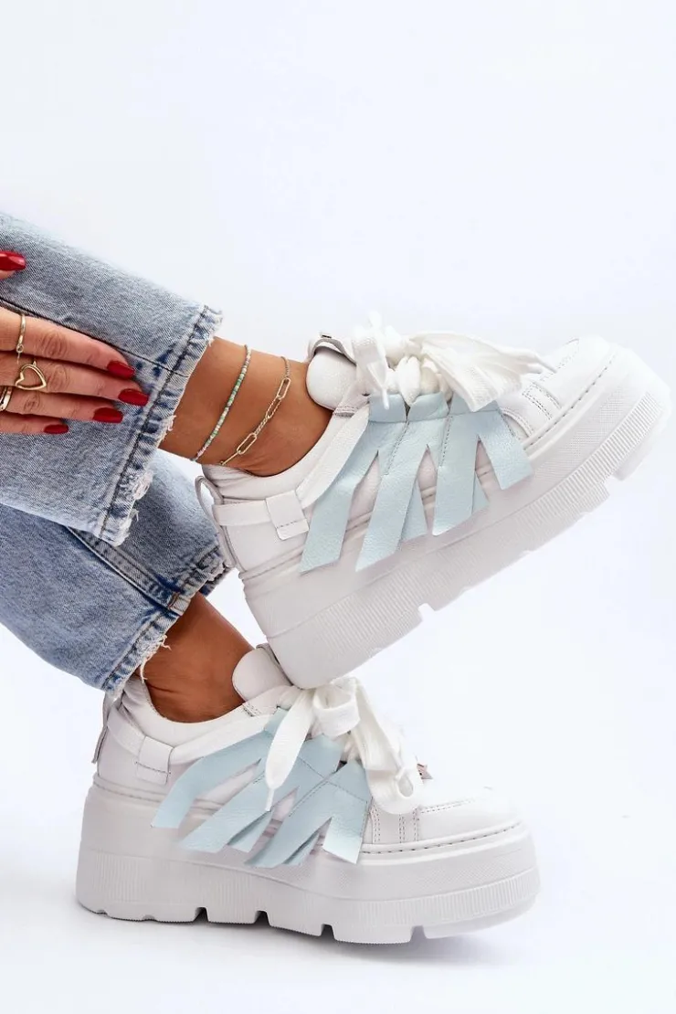 Sneakersy damskie wykonane z wysokiej jakości skóry naturalnej to nie tylko wyraz solidności, ale również modnego podejścia do stylu. Ich masywna platforma nadaje im nowoczesny wygląd, jednocześnie zapewniając stabilność podczas chodzenia. Zaokrąglone noski dodają im subtelności, a usztywniony zapiętek gwarantuje wsparcie dla stopy. Dzięki skórzanej wkładce buty zapewniają niezrównany komfort użytkowania, nawet podczas długotrwałego noszenia. Ten niezwykle modny fason doskonale uzupełni Twoje wiosenne stylizacje, nadając im wyjątkowego charakteru i indywidualnego stylu. Przy wyborze rozmiaru prosimy sugerować się tabelą rozmiarów.