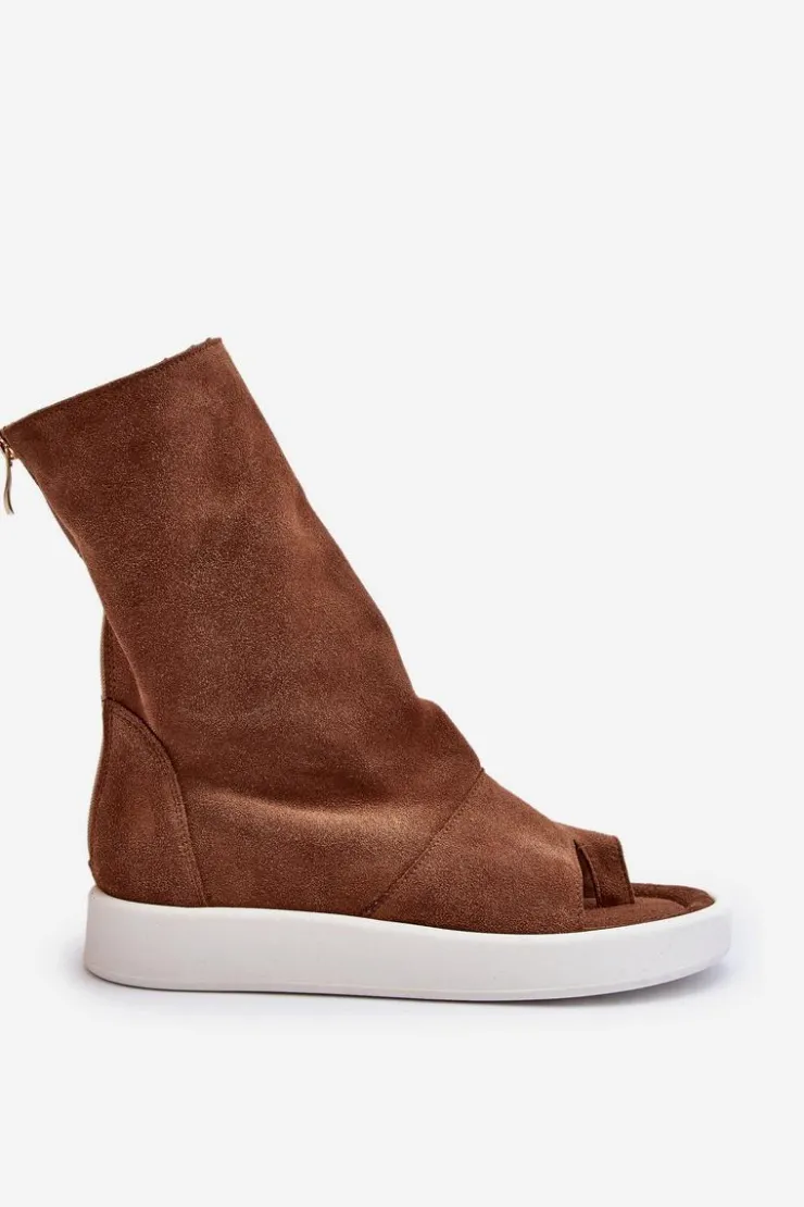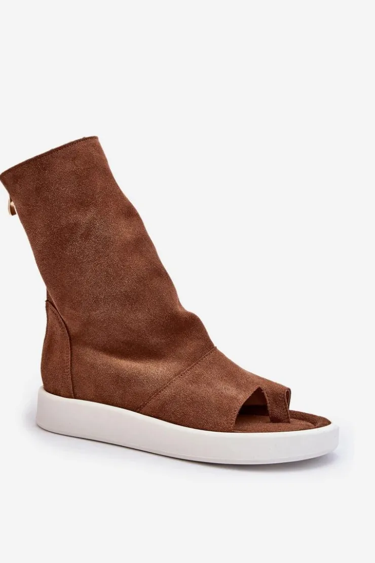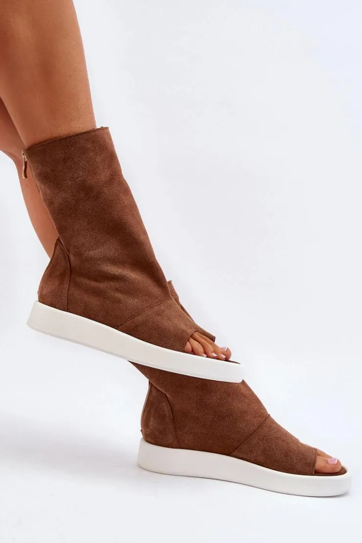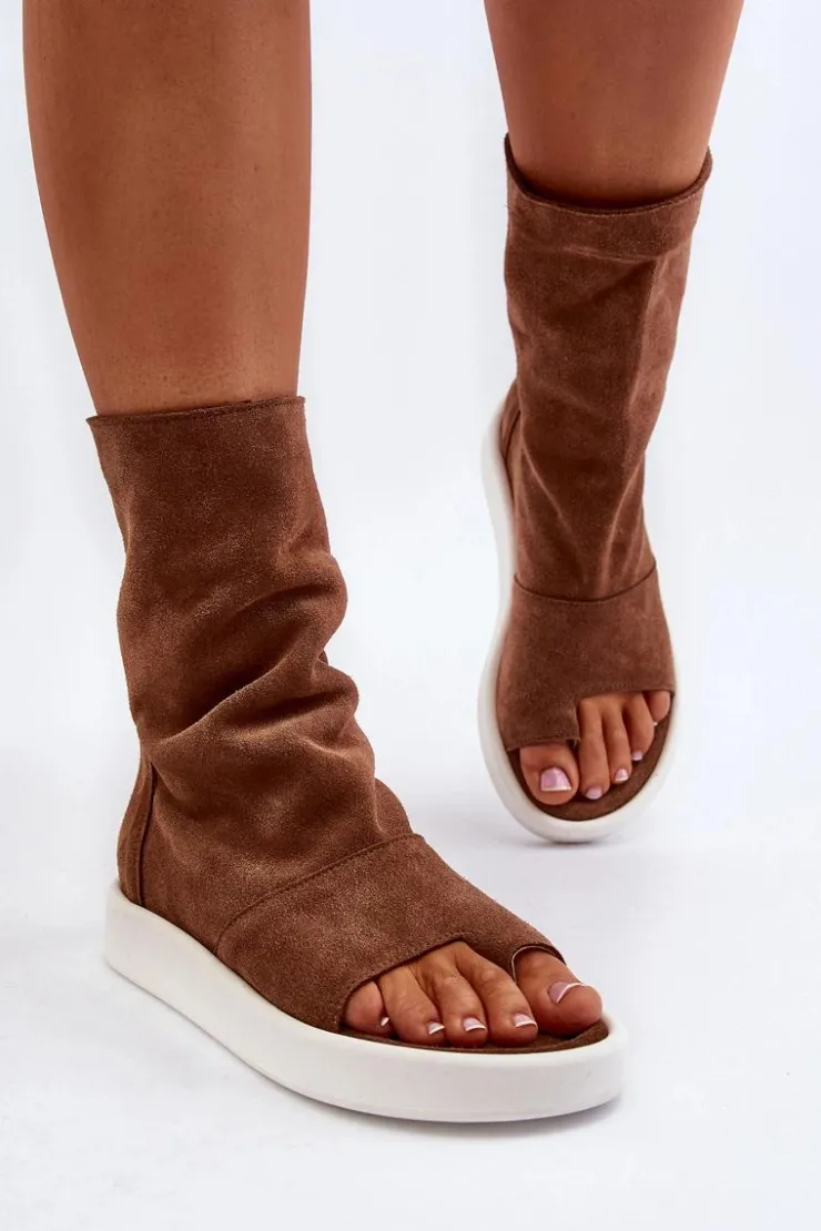 Damskie Zazoo 3441 Sandały Damskie Zamszowe Z Cholewka Brązowe