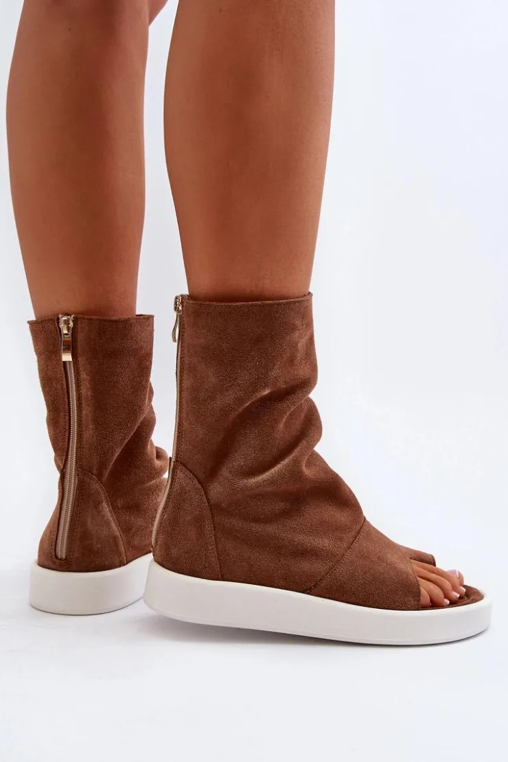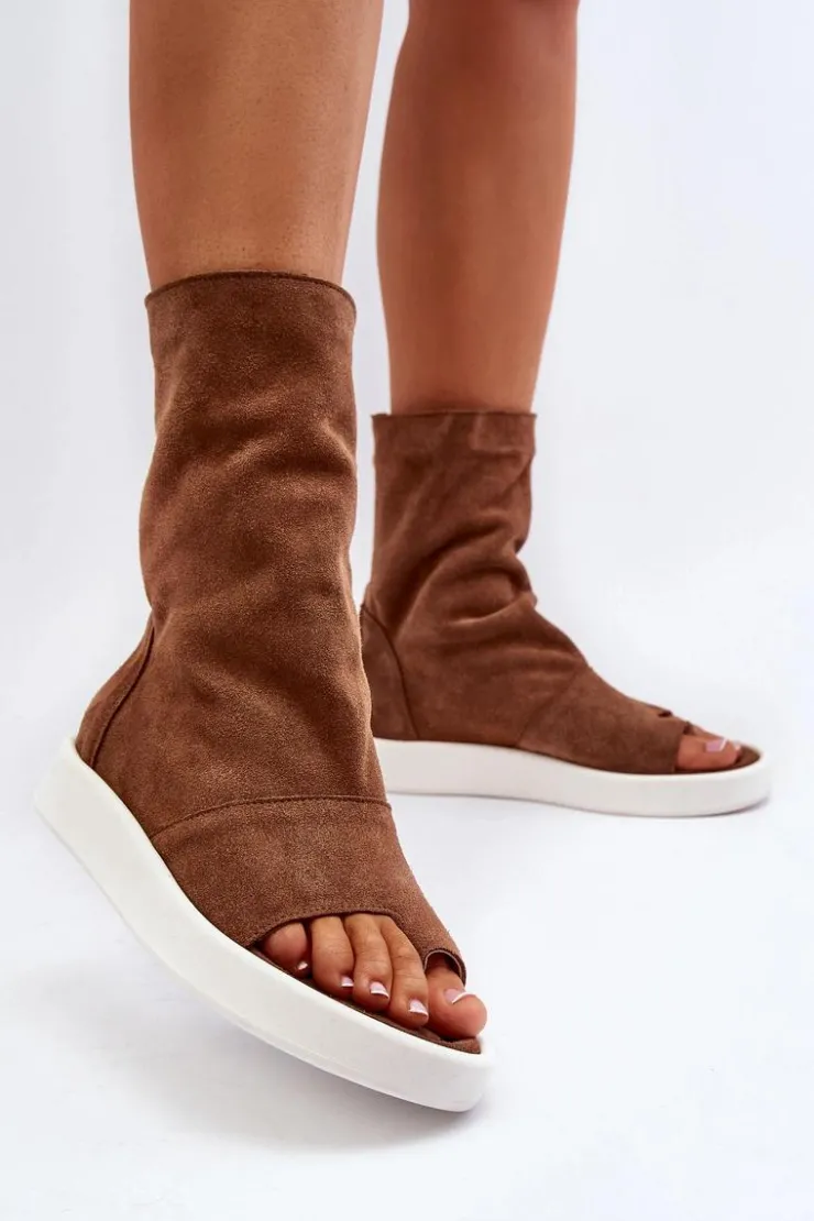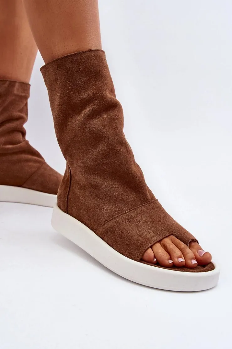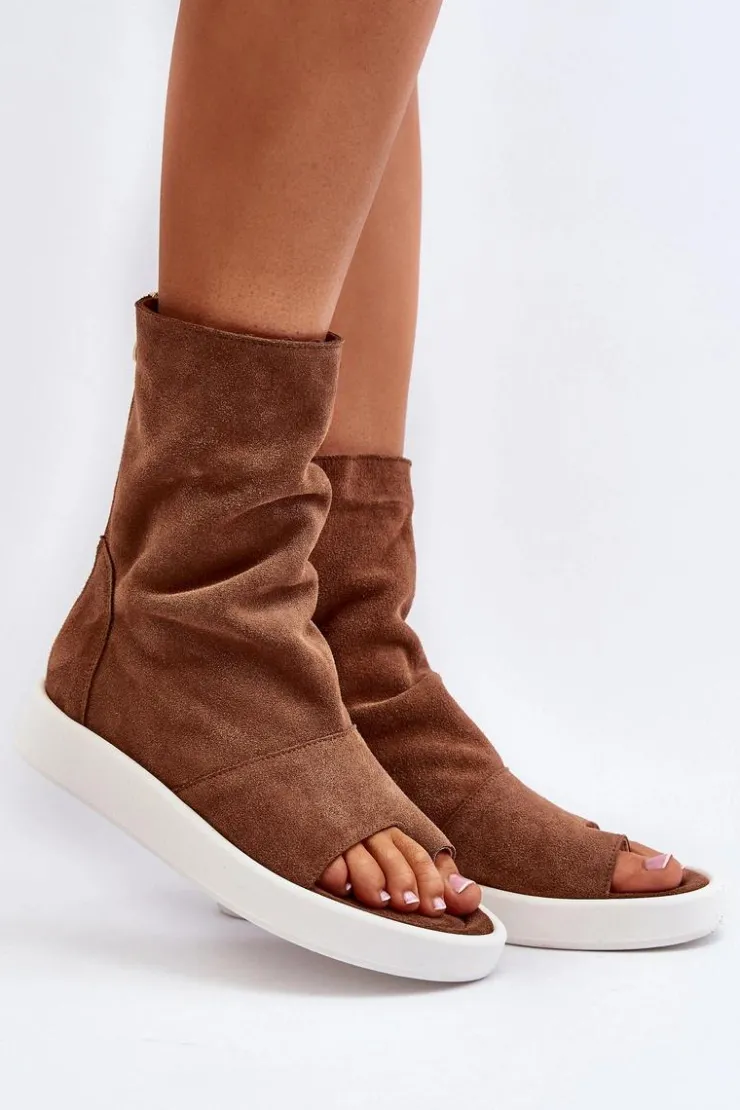 Damskie Zazoo 3441 Sandały Damskie Zamszowe Z Cholewka Brązowe