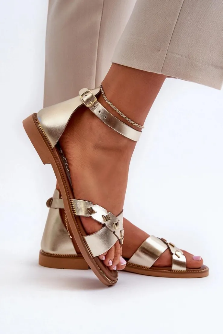 Sandały damskie z płaską podeszwą, wykonane z naturalnej skóry, to wyjątkowo komfortowe i stylowe obuwie na letnie dni. Z przodu posiadają dwa przeplatające się paski. Zapinane na regulowany pasek ze sprzączką, zapewniają idealne dopasowanie do stopy. Te sandały są nie tylko praktyczne, ale także nadają elegancji każdej letniej stylizacji. Przy wyborze rozmiaru prosimy kierować się tabelą rozmiarów.