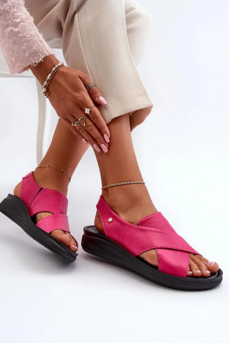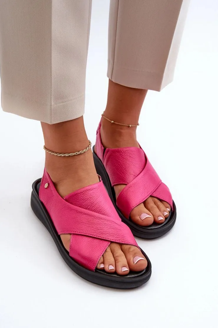 Te sandałki damskie to połączenie wygody i stylu, które z pewnością przypadnie Ci do gustu! Wykonane z naturalnej skóry, zapewniają trwałość i komfort noszenia. Model wsuwany, z dodatkową gumką. Ozdobny emblemat z boku cholewki dodaje im wyjątkowego charakteru, nadając im subtelny, elegancki akcent. Sandały zostały osadzone na platformie oraz lekkim koturnie, co nie tylko dodaje im stylowego wyglądu, ale także zapewnia stabilność i komfort podczas chodzenia. Model ten jest niezwykle praktycznym i modnym dodatkiem do letniej garderoby, idealnym zarówno na codzienne spacery, jak i na bardziej formalne okazje. Przy wyborze rozmiaru prosimy kierować się tabelą rozmiarów.