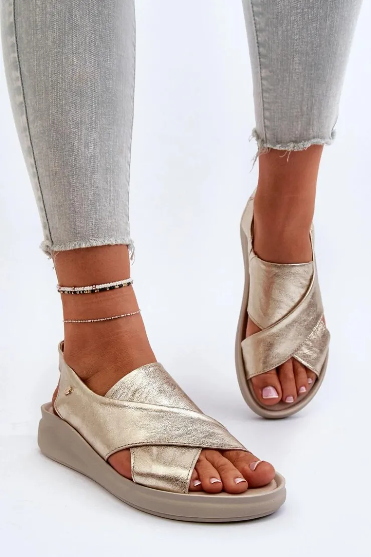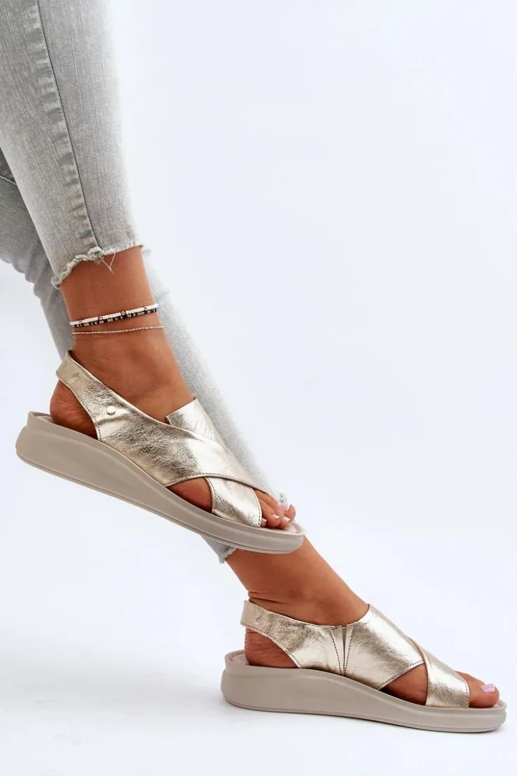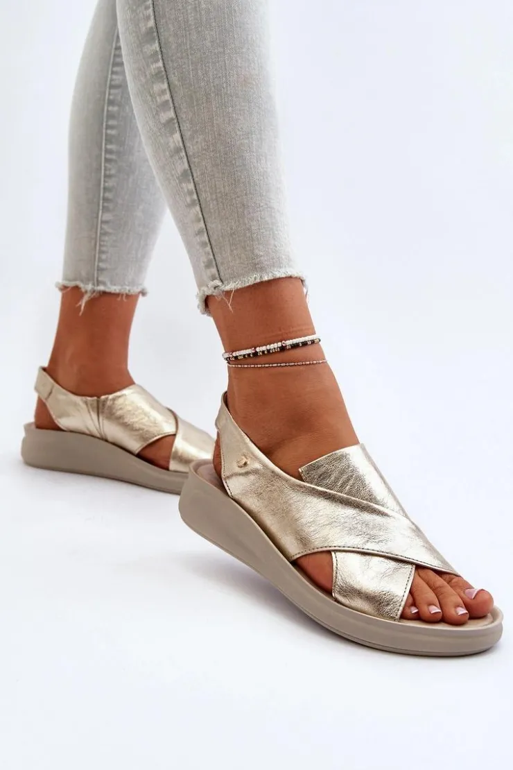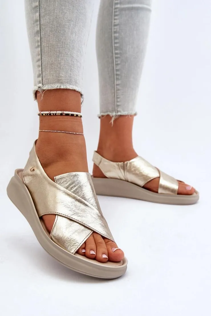 Damskie Zazoo 40392 Skórzane Sandały Damskie Złote
