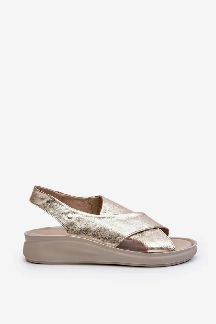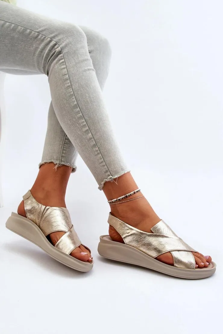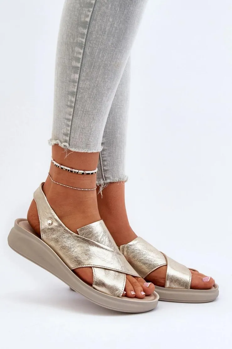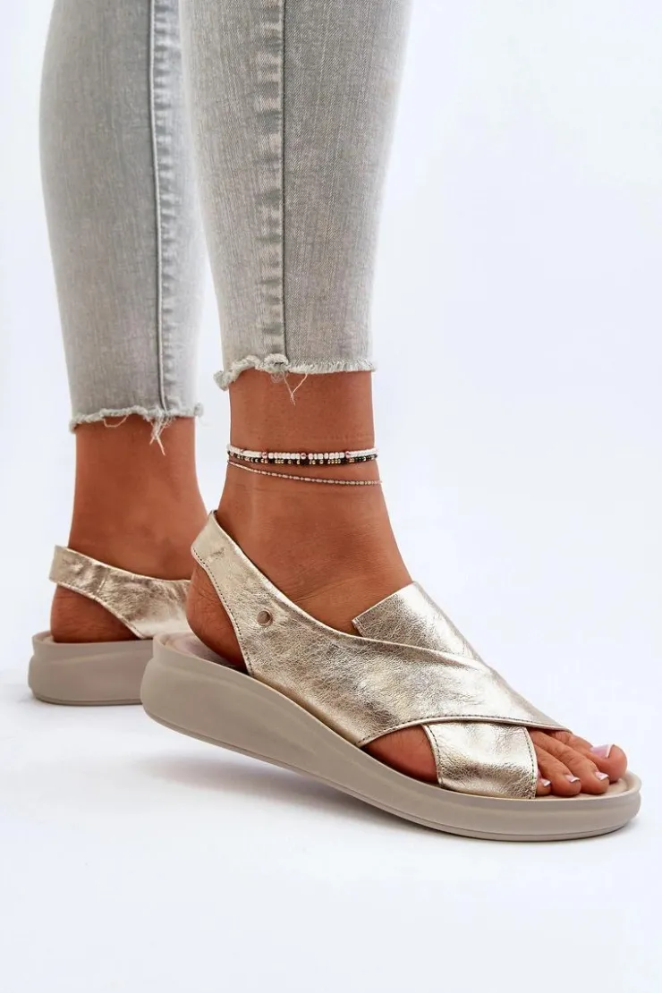Damskie Zazoo 40392 Skórzane Sandały Damskie Złote