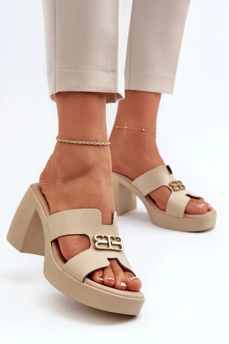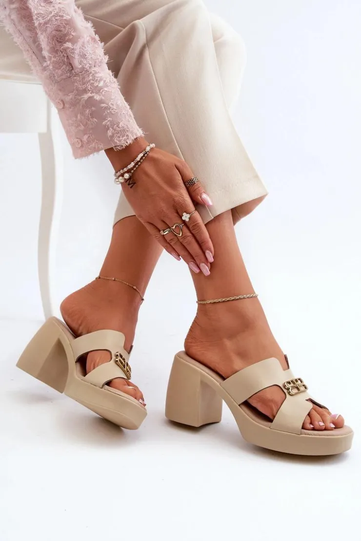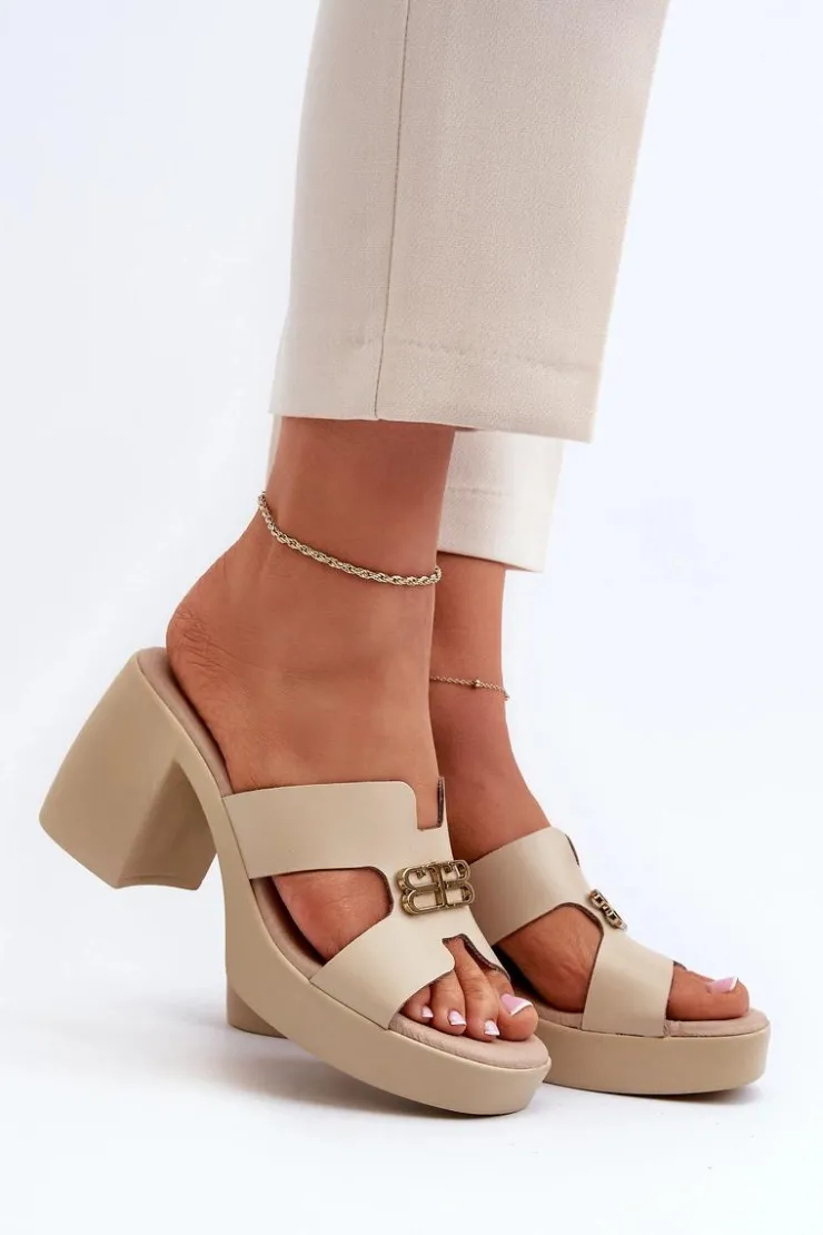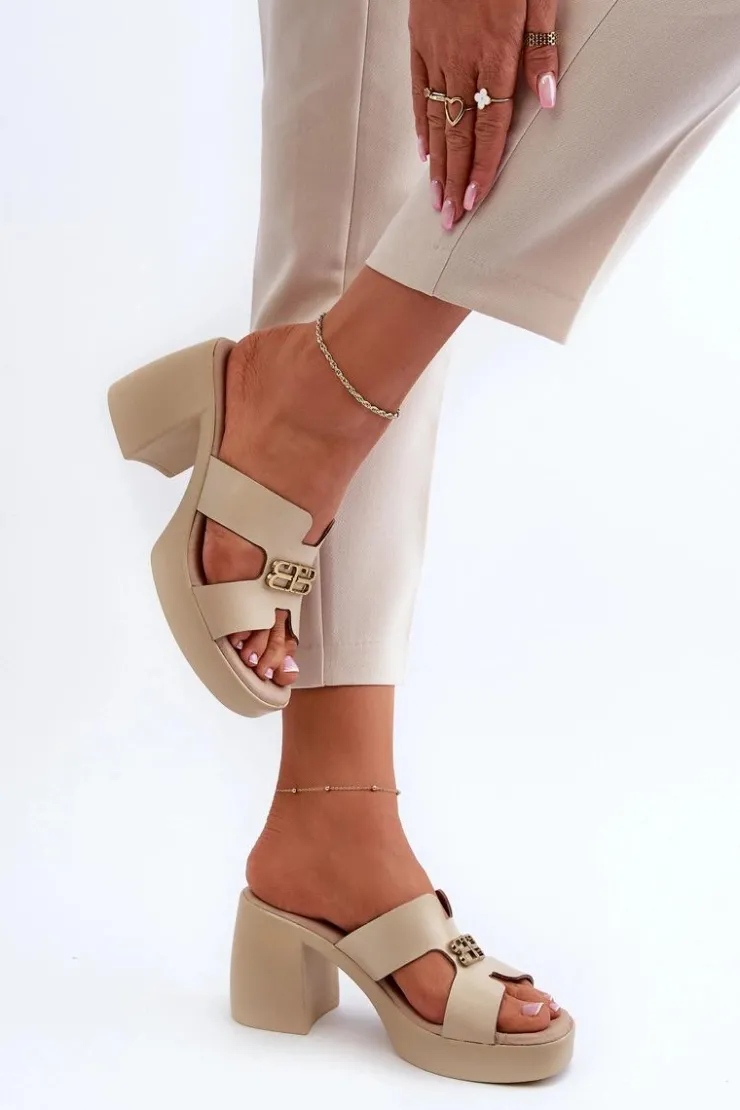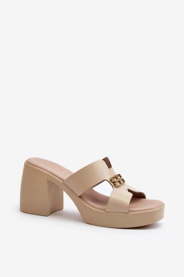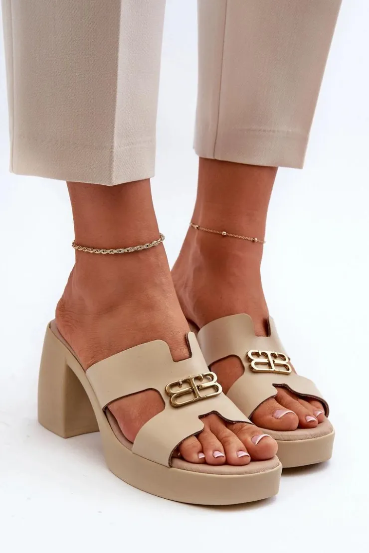 Klapki damskie wykonane z naturalnej skóry na stabilnym obcasie słupku to idealne połączenie elegancji i wygody na letnie dni. Z przodu złota ozdoba dodaje subtelności i stylu każdej stylizacji. Te modne klapki są nie tylko wygodne, ale także nadają szyku i uroku każdej letniej kreacji. Przy wyborze rozmiaru prosimy sugerować się tabelą rozmiarów.