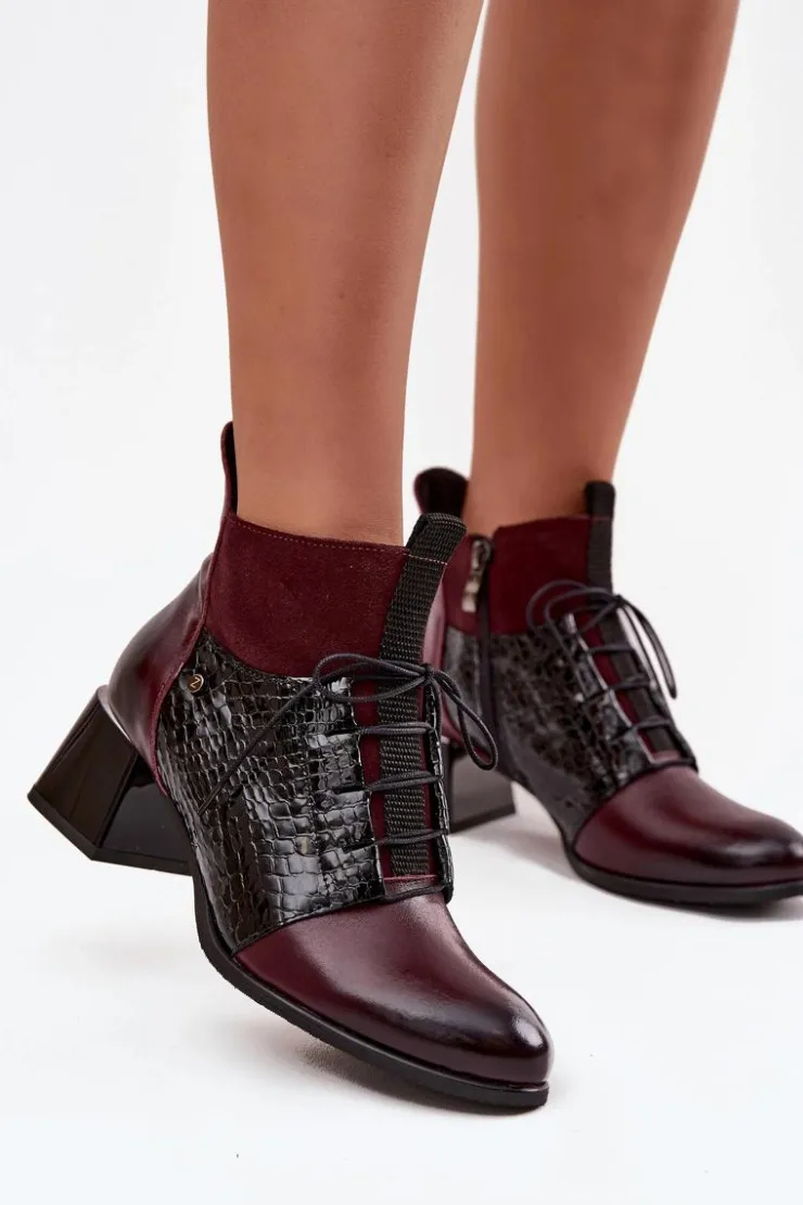 Eleganckie botki wykonane z naturalnej skóry, ocieplane filcem, to połączenie stylu i komfortu na chłodne dni. Zapinane na zamek. Wyróżniają się cholewką z efektownym zwierzęcym wzorem, który dodaje im charakteru. Idealne do eleganckich stylizacji, będą świetnym uzupełnieniem każdej jesienno-zimowej garderoby. Przy wyborze rozmiaru prosimy kierować się tabelą rozmiarów