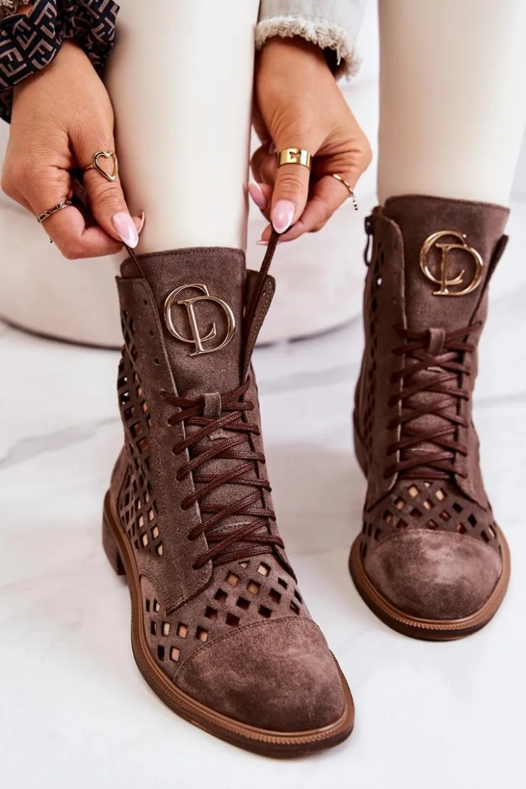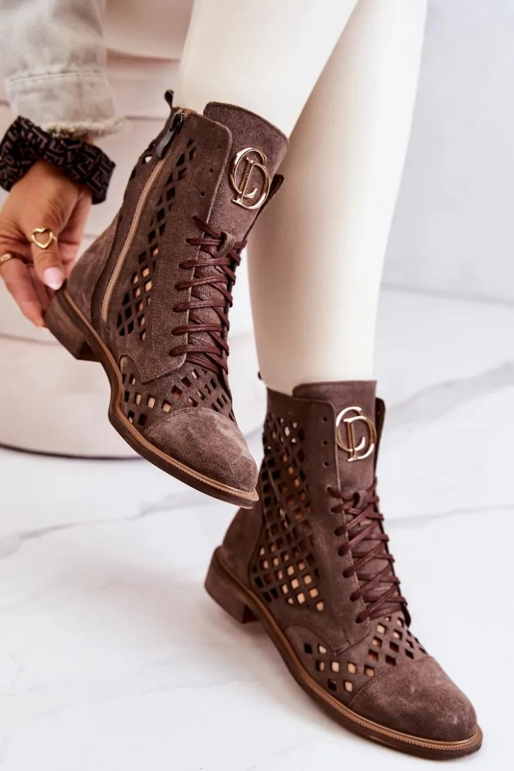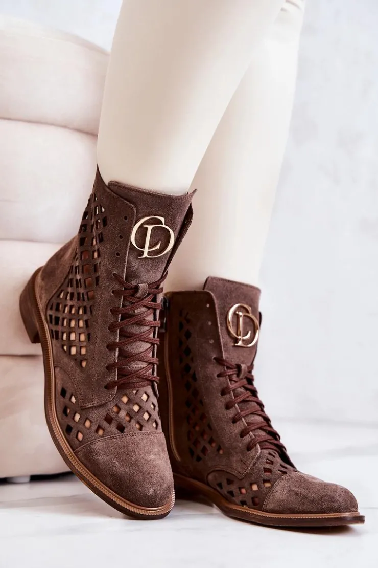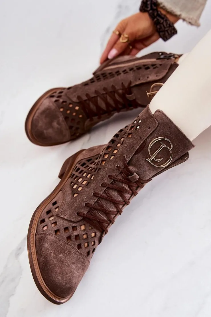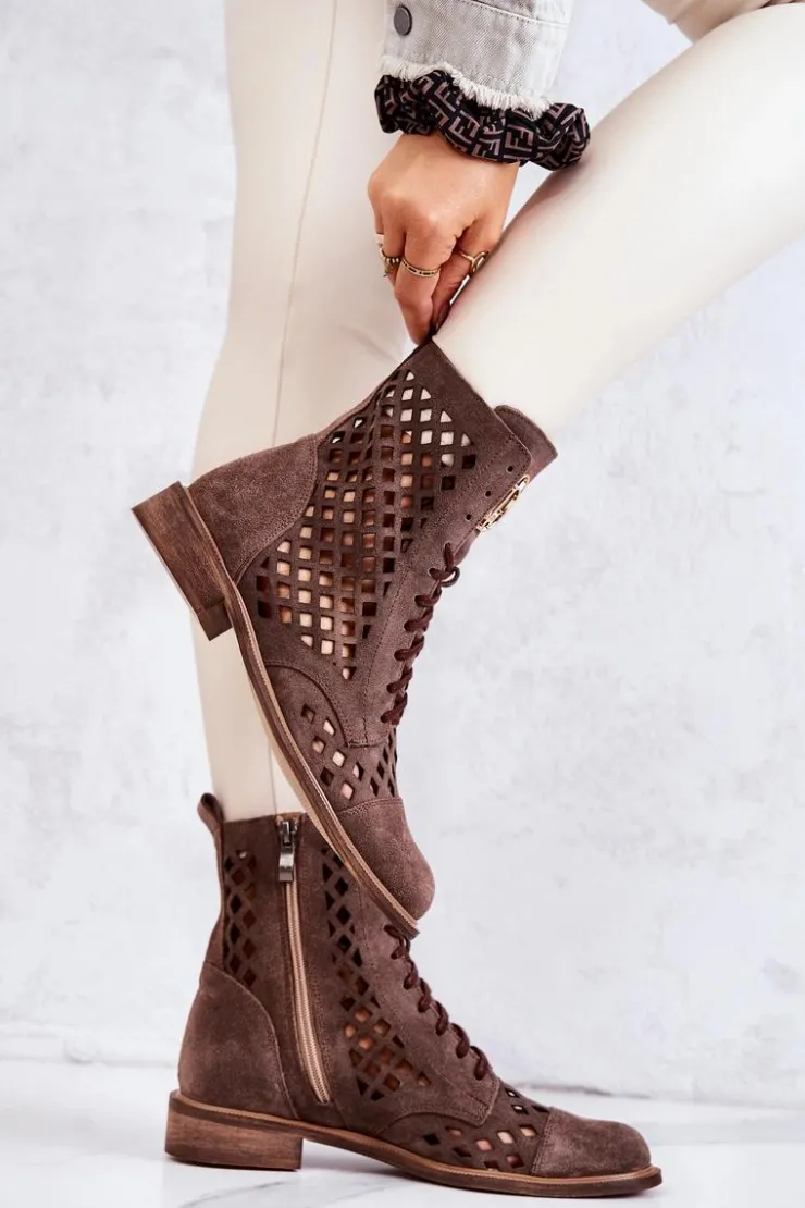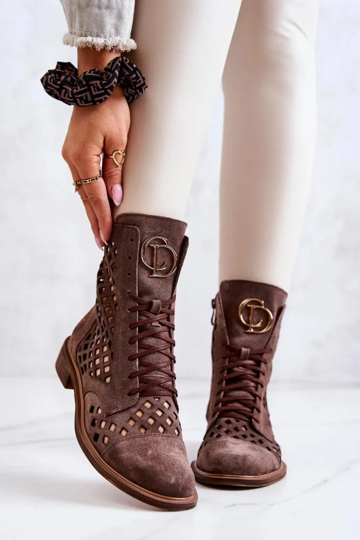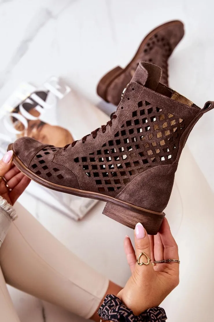 Wyjątkowe, ażurowe botki od polskiej firmy Nicole. Botki wykonane są w całości ze skóry naturalnej z dbałością o każdy detal. Skórzana wkładka oraz wygodny, płaski obcas zadbają o Twój komfort. Botki dopełnią wiele stylizacji. Zapinane na suwak oraz wiązane. Koniecznie sprawdź całą naszą kolekcję butów marki Nicole. Przy wyborze rozmiaru prosimy sugerować się tabelą rozmiarów.