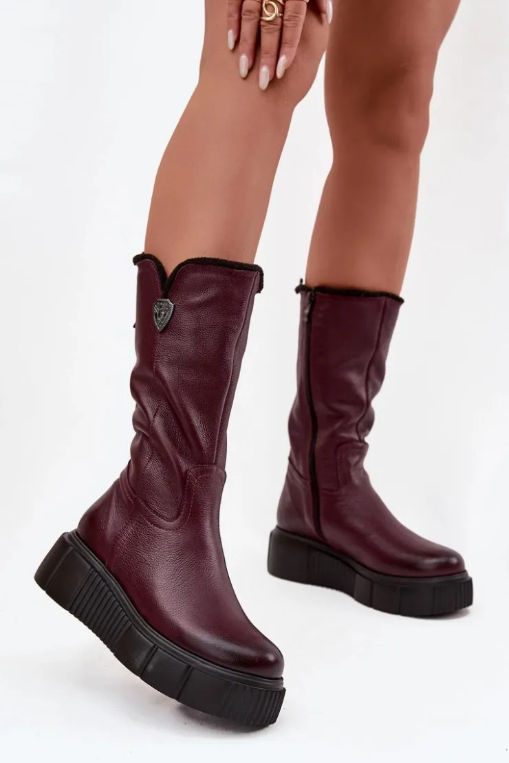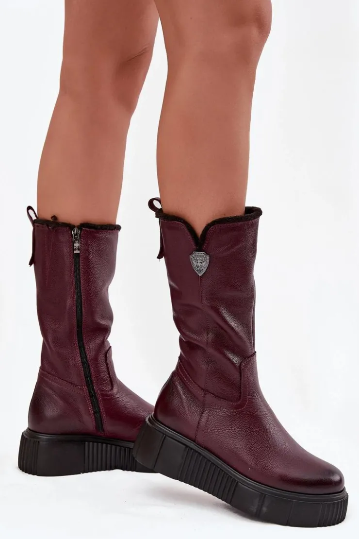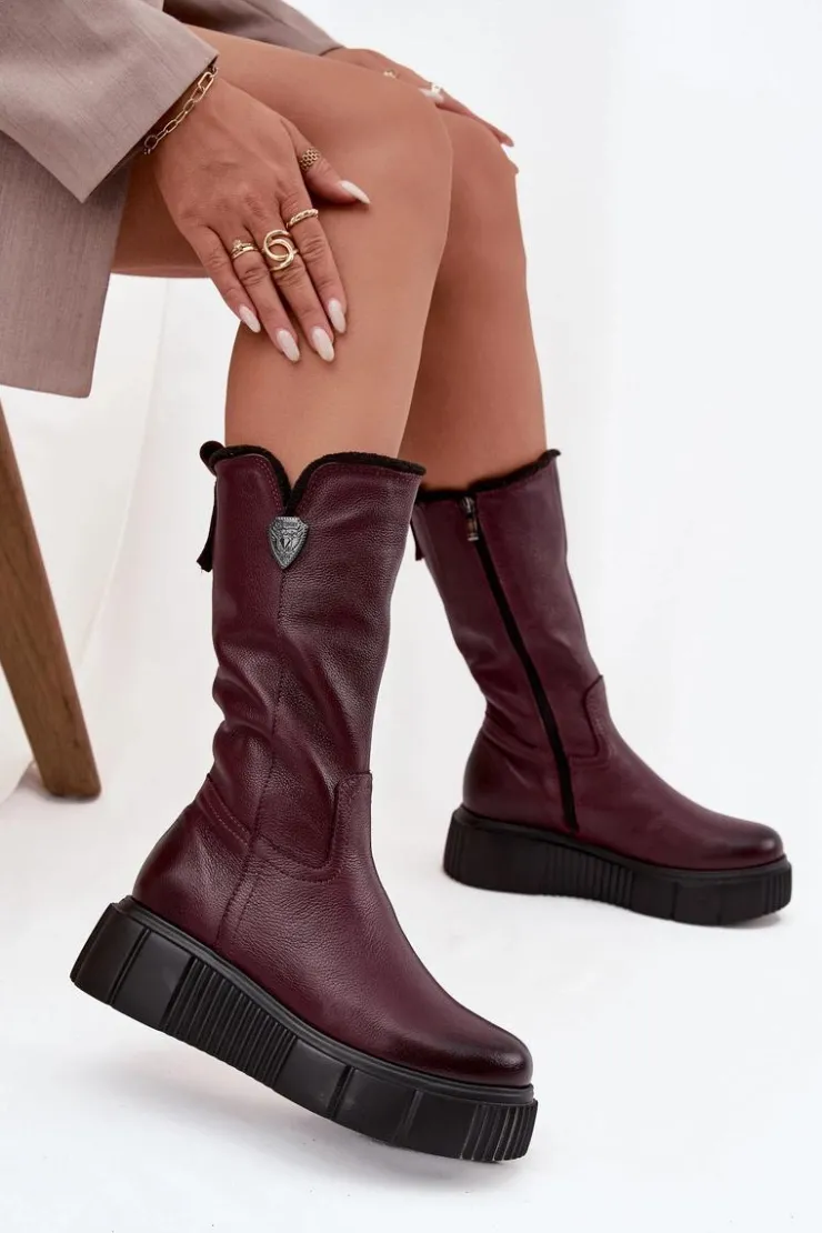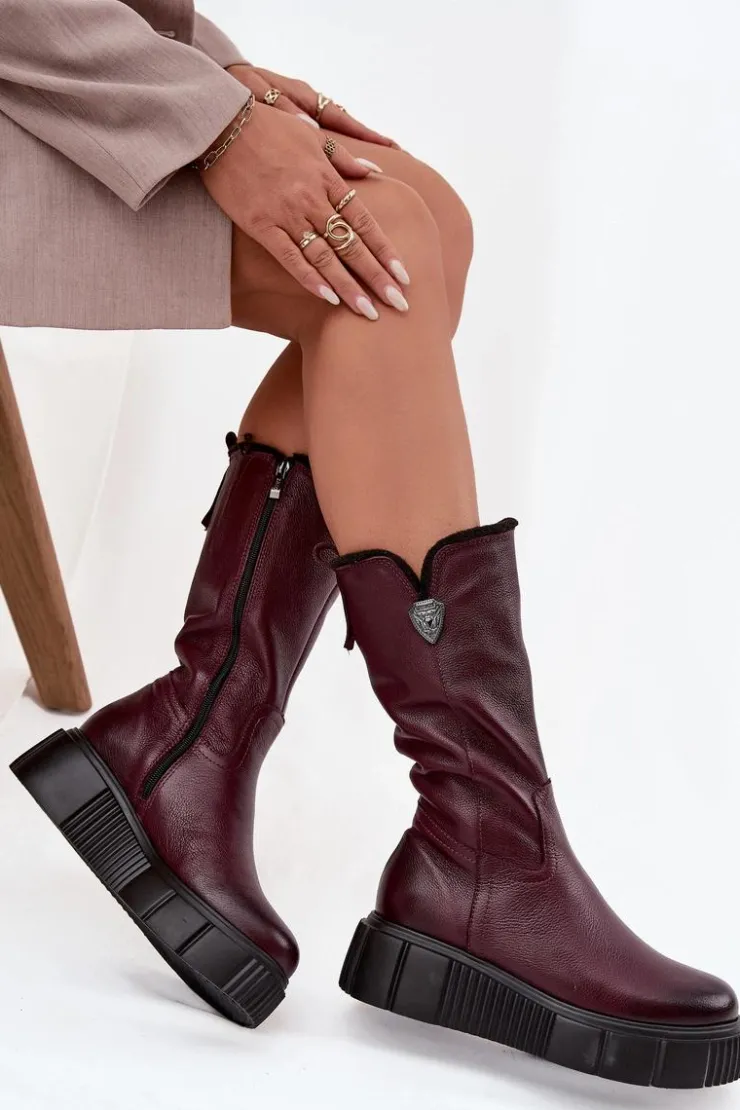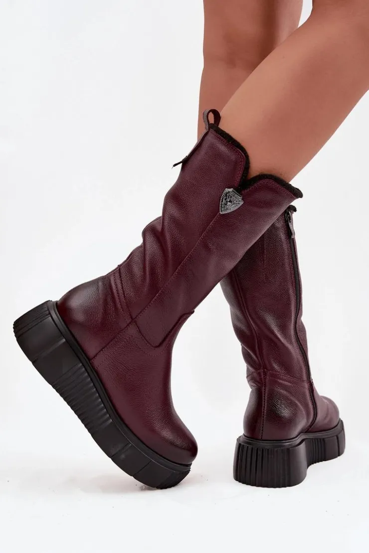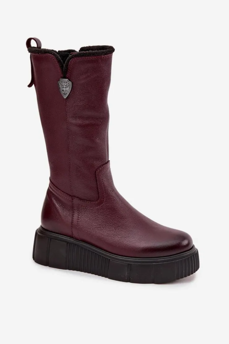 Damskie kozaki zostały wykonane z naturalnej skóry. Model ten posiada suwak z boku cholewki. Wnętrze zostało ocieplone naturalną wełną. Zapiętek jest usztywniany. Kozaki osadzono na masywnej platformie oraz koturnie. Posiadają ozdobny element z boku cholewki. Ten model świetnie sprawdzi się podczas chłodnych, zimowych dni. Przy wyborze rozmiaru prosimy sugerować się tabelą rozmiarów.