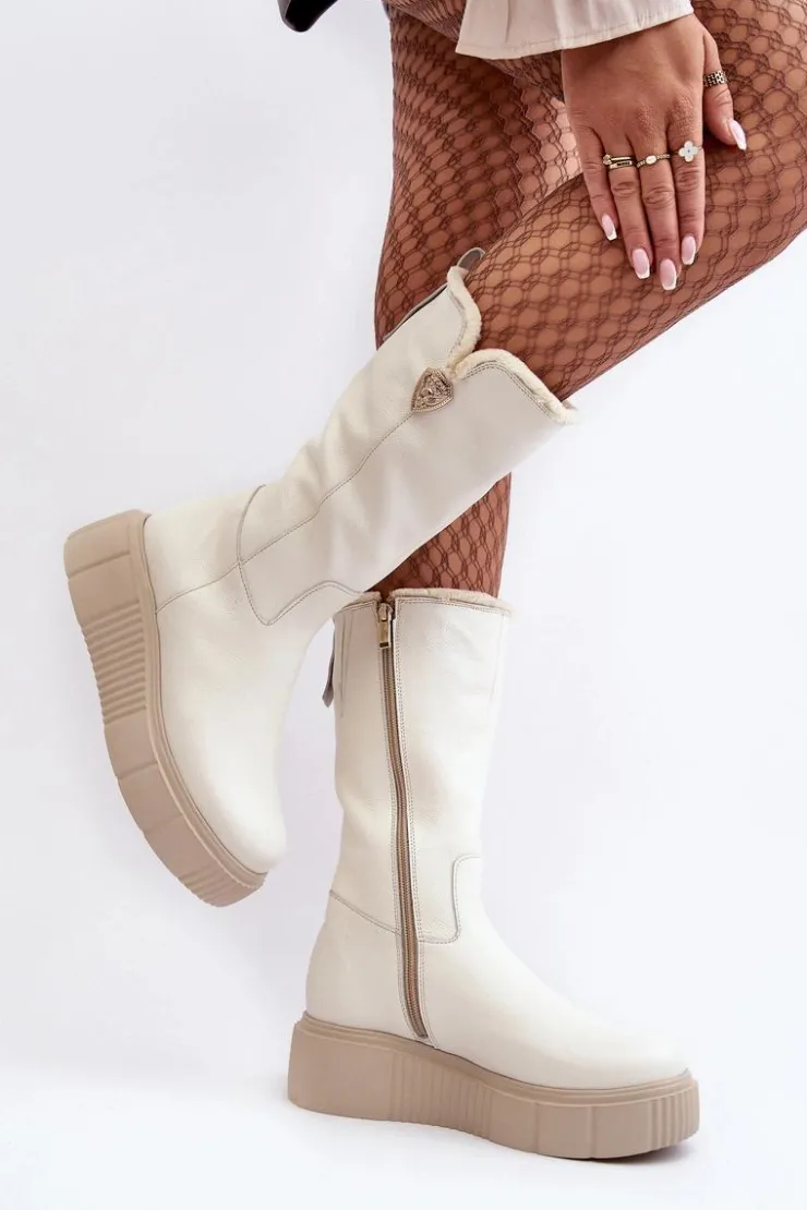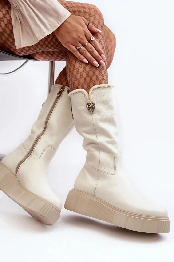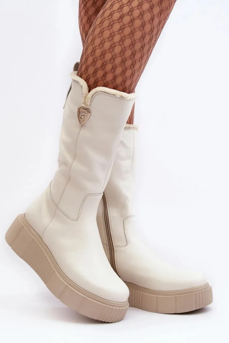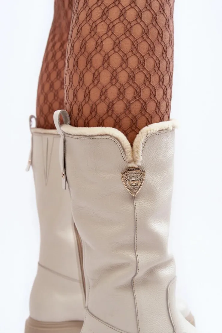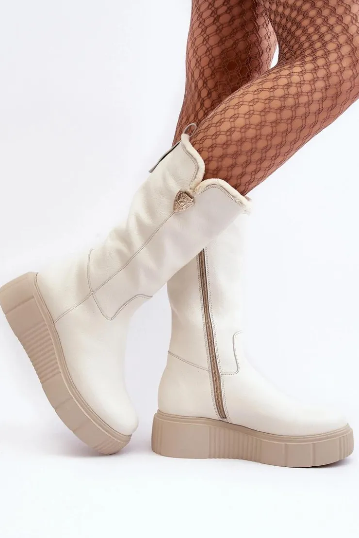 Damskie Zazoo Damskie Skórzane Kozaki Z Wełną Kremowe Bayla