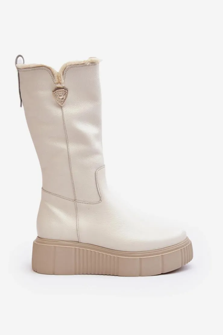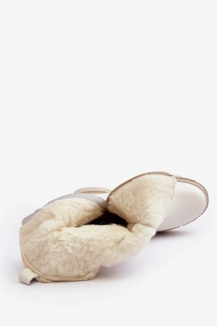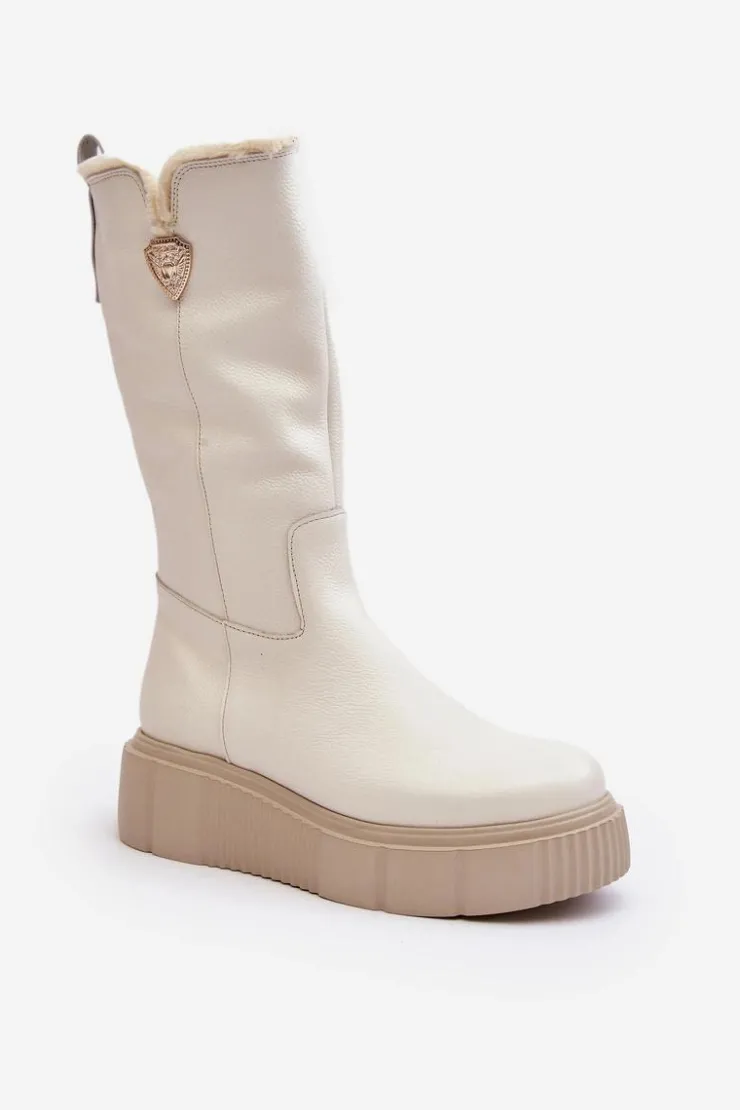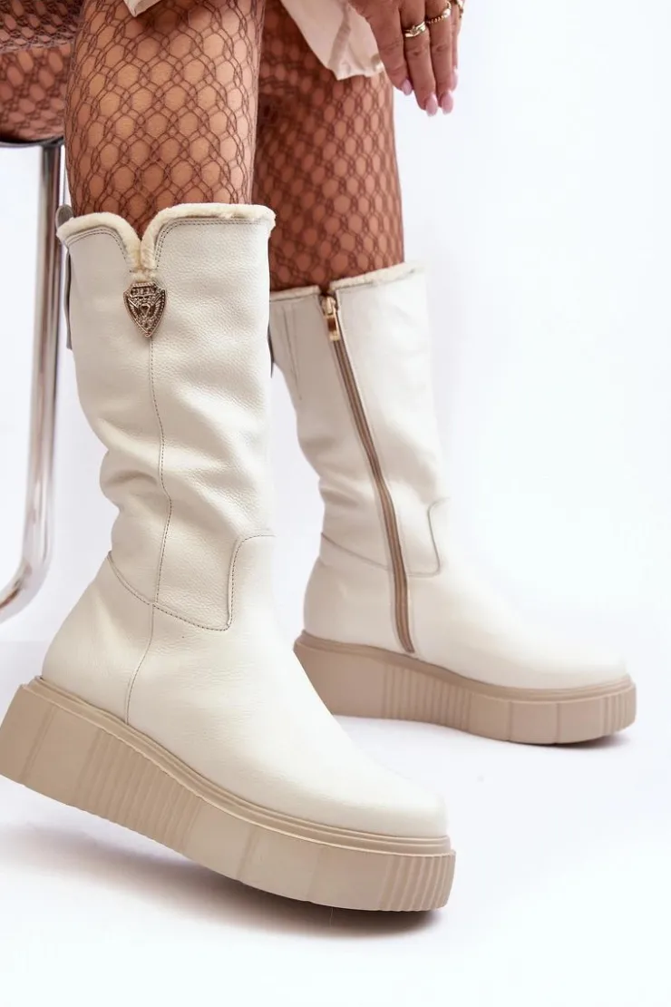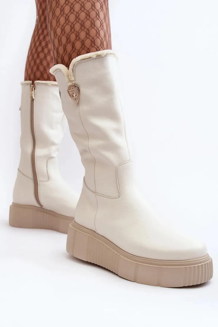 Damskie Zazoo Damskie Skórzane Kozaki Z Wełną Kremowe Bayla