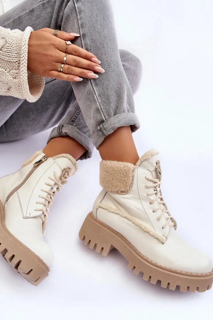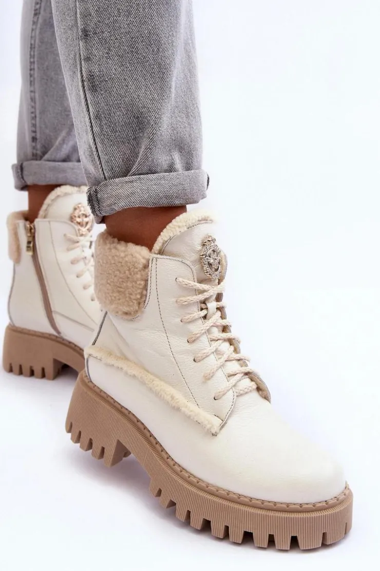 Botki w formie traperów zostały osadzone na masywnym obcasie. Podeszwa z bieżnikiem. Na języku znajduje się ozdobny element. Trapery wykonane zostały z wysokiej jakości naturalnych skór. Wewnątrz botki ocieplono wełną. Model ten posiada sznurowanie oraz suwak z boku cholewki. Dodatkowo zapiętek jest usztywniany. Przy wyborze rozmiaru prosimy sugerować się tabelą rozmiarów.