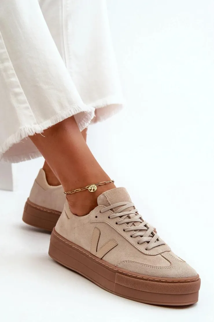Sneakersy damskie na platformie, wykonane z wysokiej jakości naturalnego zamszu. Te stylowe buty łączą elegancję z nowoczesnym designem, dzięki czemu doskonale sprawdzą się w różnych stylizacjach. Platforma zapewnia dodatkowy komfort i lekkość podczas chodzenia, jednocześnie dodając kilku centymetrów wzrostu. Idealne do codziennych outfitów, jak i bardziej casualowych zestawów. Wybierz je, aby podkreślić swój wyjątkowy styl i cieszyć się wygodą przez cały dzień. Przy wyborze rozmiaru prosimy kierować tabelą rozmiarów.